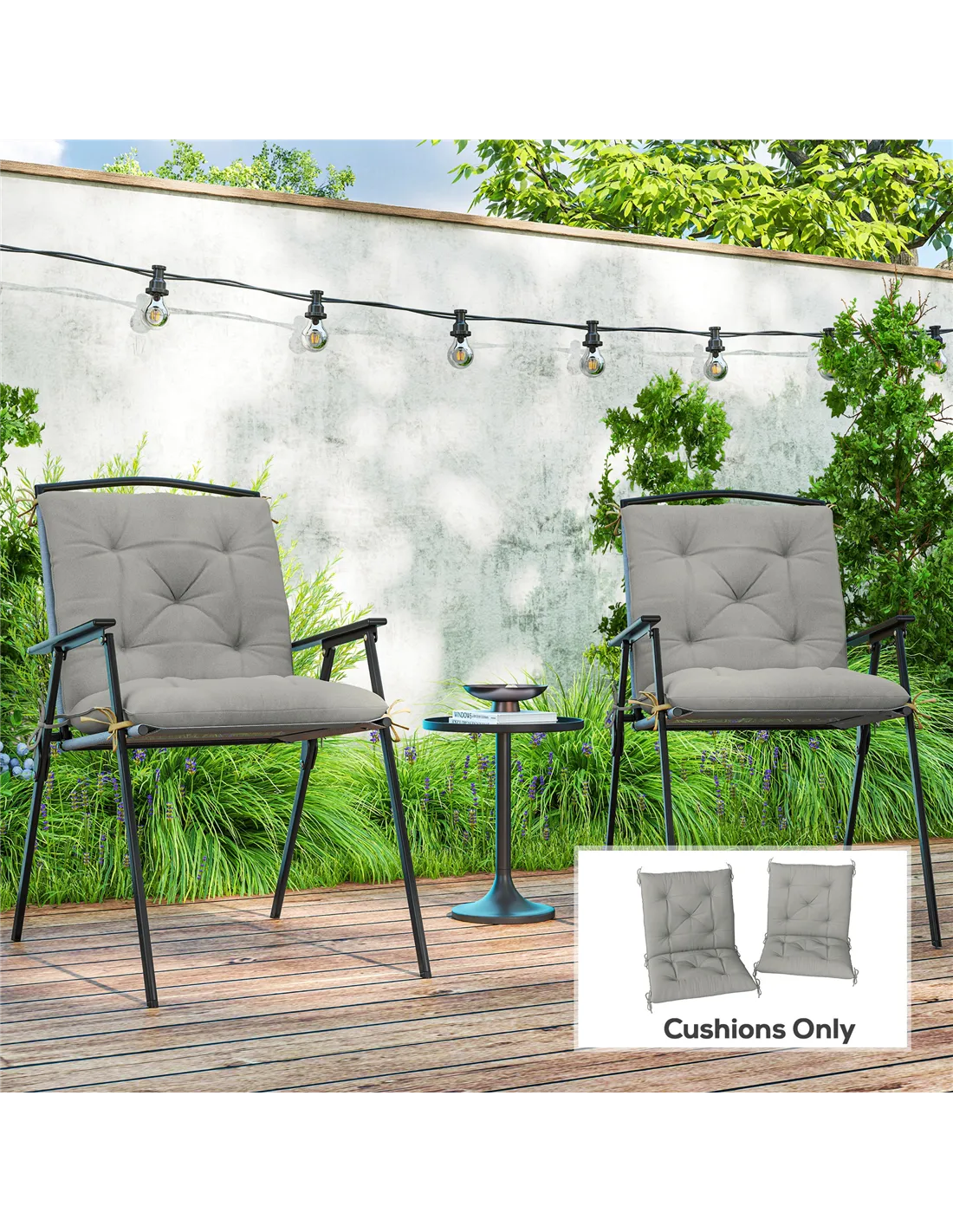 Refresh your single-seat chairs with these two replacement cushions from Outsunny. Each have a polyester fabric cover: smooth on the skin, durable and stain resistant - they're easy to care for. Plush cotton filling for comfort. The seat and back combined design keeps your upper and lower body comfortable. Completed with tie fastenings to hold into place.