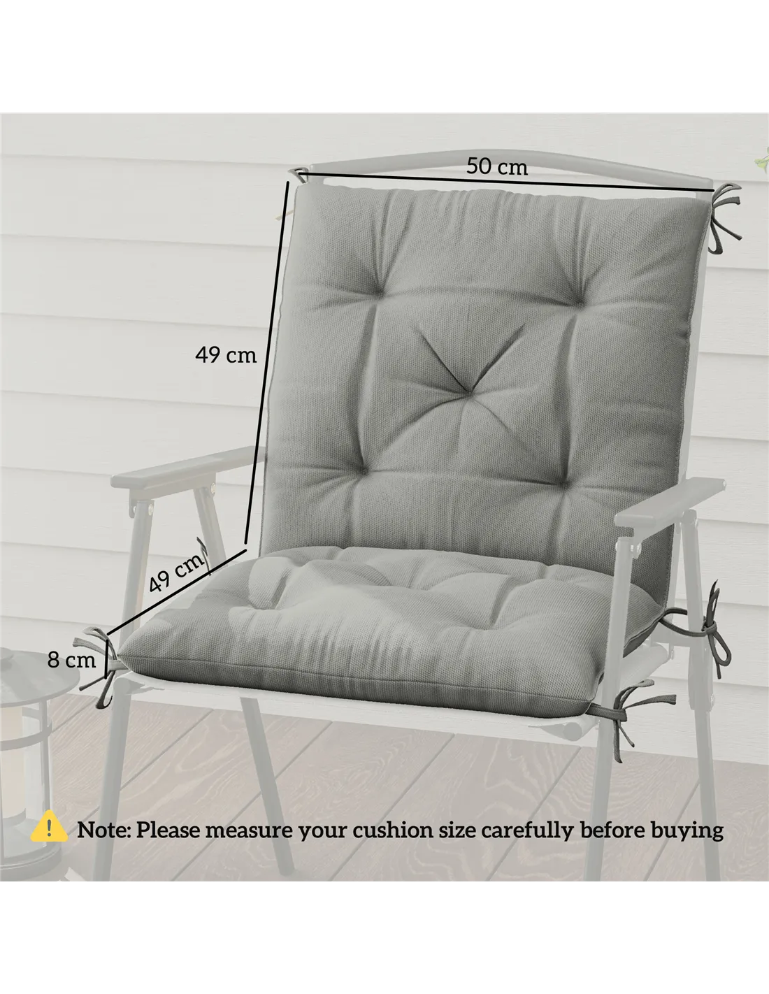 Please measure your chair carefully before purchase. Each cushion measures 50W x 98L x 8D cm, with the seat depth at 49 cm and back height at 49 cm. This ensures a comfortable fit for most single-seat chairs. - How do I clean the cushions?
