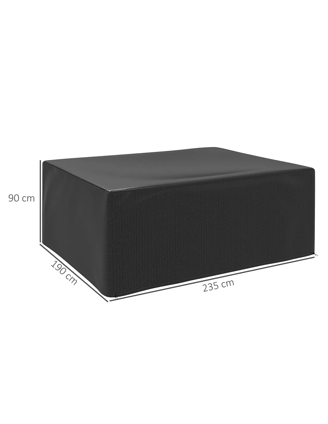 - Perfect for covering large outdoor dining sets, benches, or lounge chairs, including square, rectangular, and oval shapes, thanks to its generous 235 x 190 x 90cm dimensions.