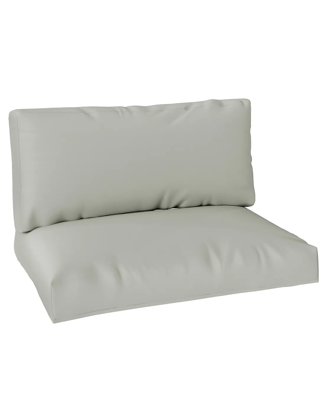 - Two piece set: a 120 x 80 cm seat cushion and a 120 x 45 cm back cushion