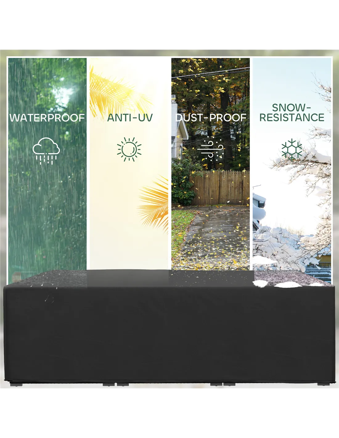 Yes, the cover is crafted from all-season Oxford polyester fabric, designed to resist frost, snow, rain, and harmful UV rays, making it ideal for year-round protection. - Will this cover fit my large patio set?