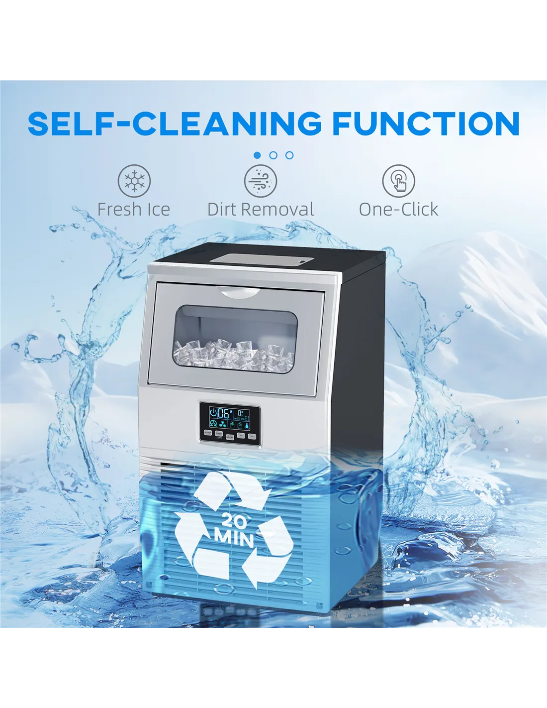- Ice Production: 30 kg/day, 32 pcs/12-20mins