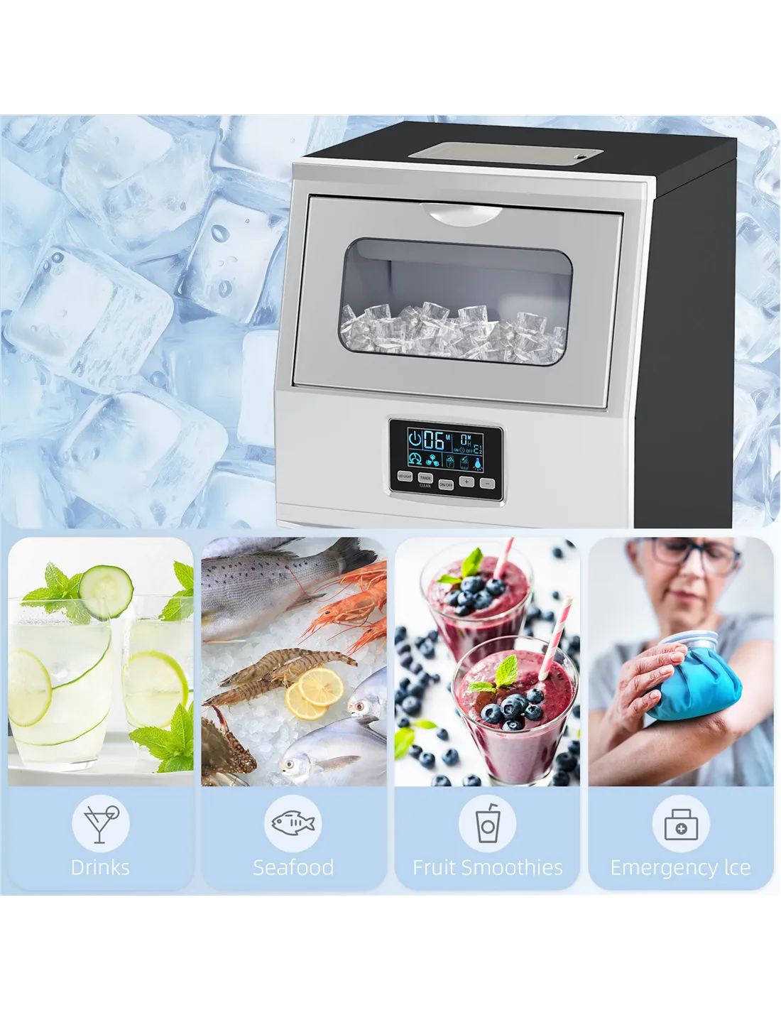 - Ice Tank Capacity: 10 L, 4 kg