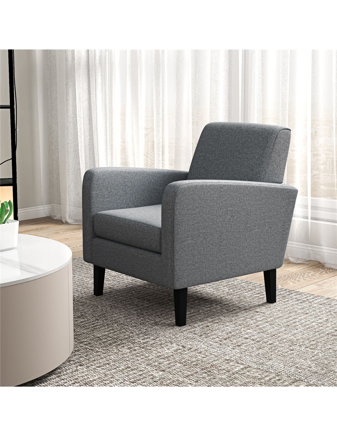 HOMCOM 2 Pieces Modern Armchairs with Rubber Wood Legs, Upholstered Accent Chairs, Single Sofa for Living Room, Bedroom, Grey