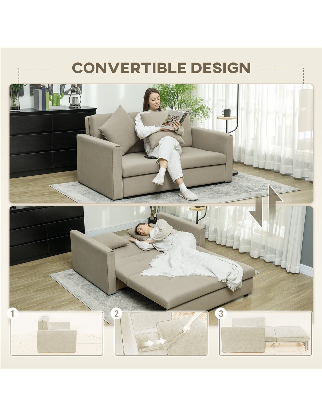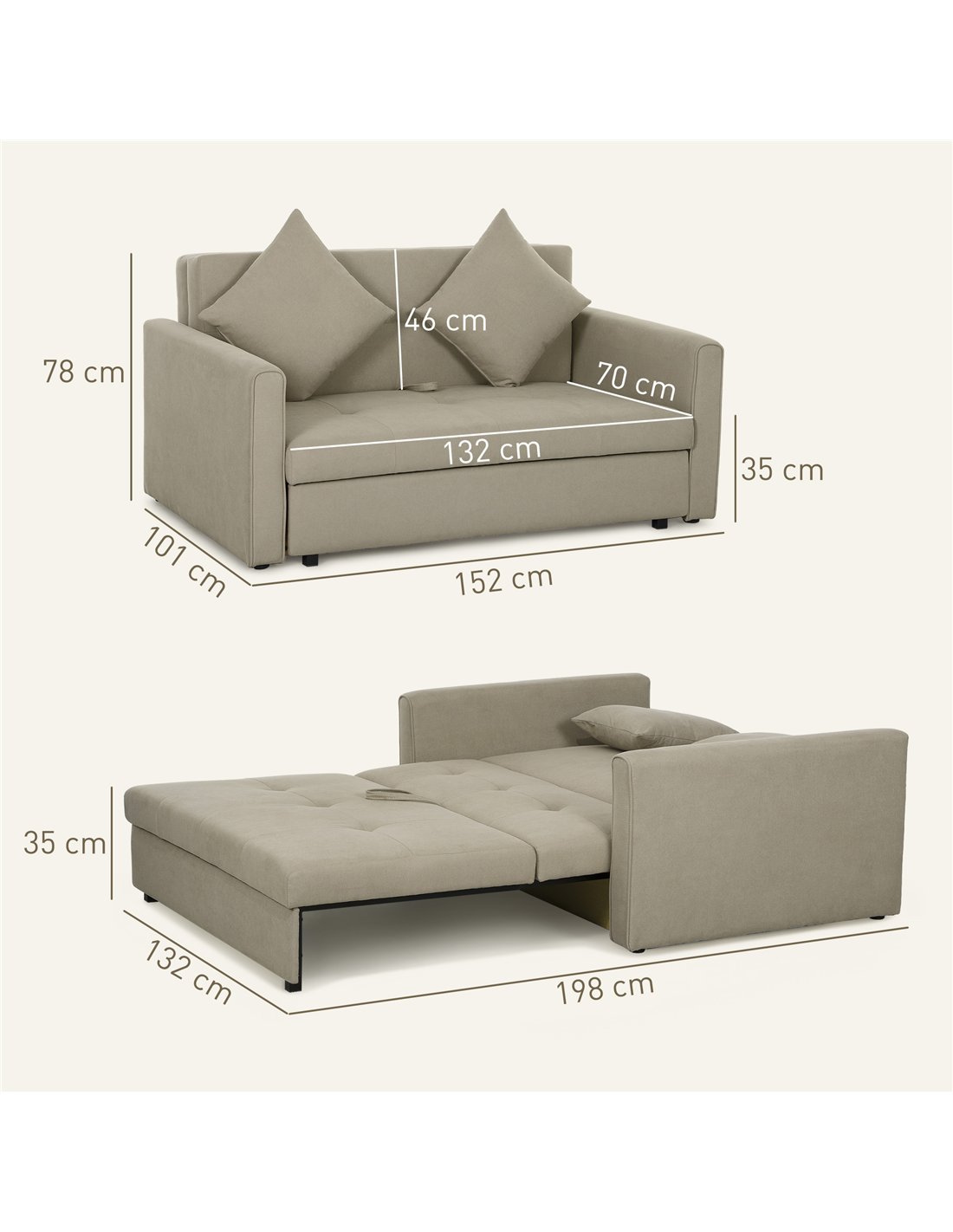 Switch from sitting to sleeping with ease, thanks to this HOMCOM sofa bed. The metal, wood and MDF frame means a tough core, supporting you whilst sitting and sleeping. It easily transforms from a two seater sofa into a bed - saves you time and stress. It comes with a 130 x 67.5cm storage compartment - room for keeping small pieces out of sight. Padded for comfort, this sofa bed comes complete with two small pillows.