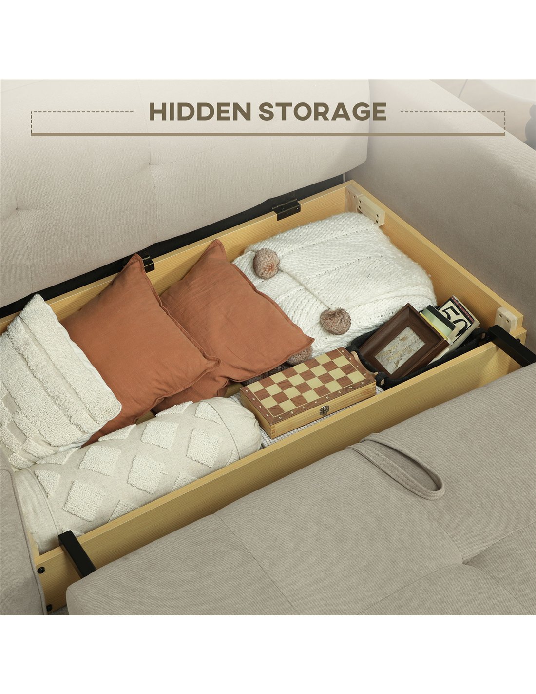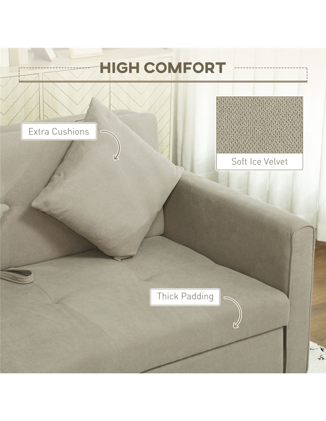 HOMCOM 2 Seater Sofa Bed, Convertible Bed Settee, Modern Velvet Loveseat Sofa Couch with 2 Cushions, Hidden Storage for Living Room, Guest Room, Light Brown