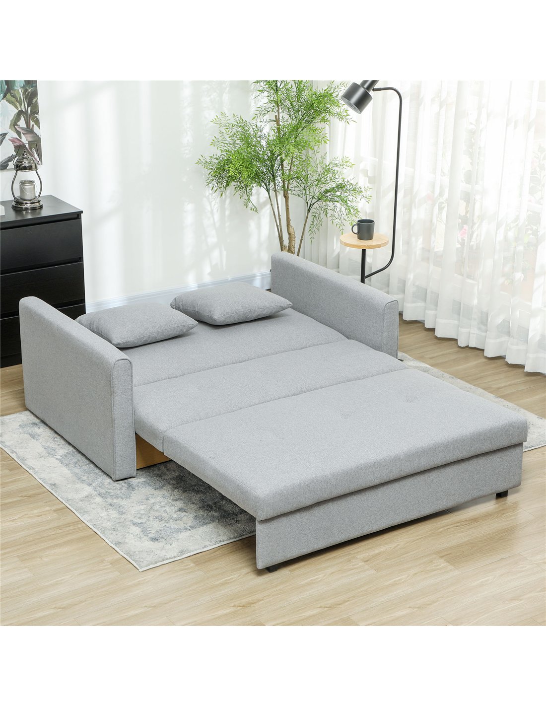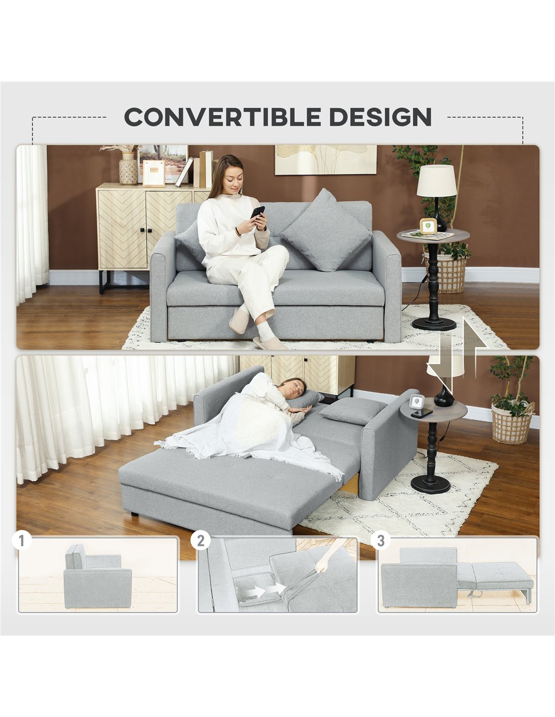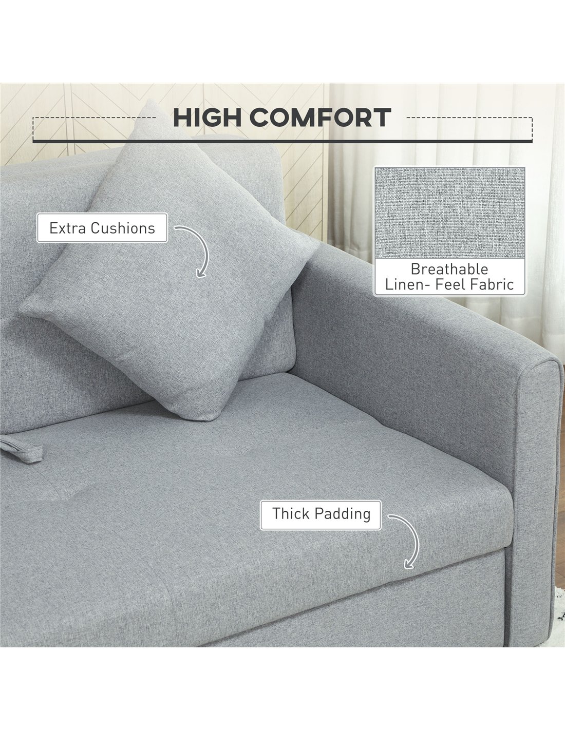 HOMCOM 2 Seater Sofa Bed, Convertible Bed Settee, Modern Linen Loveseat Sofa Couch with 2 Cushions, Hidden Storage for Living Room, Guest Room, Light Grey