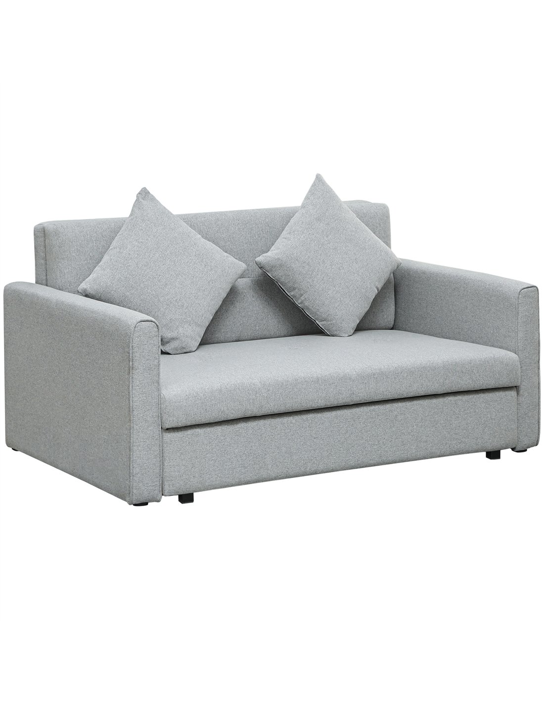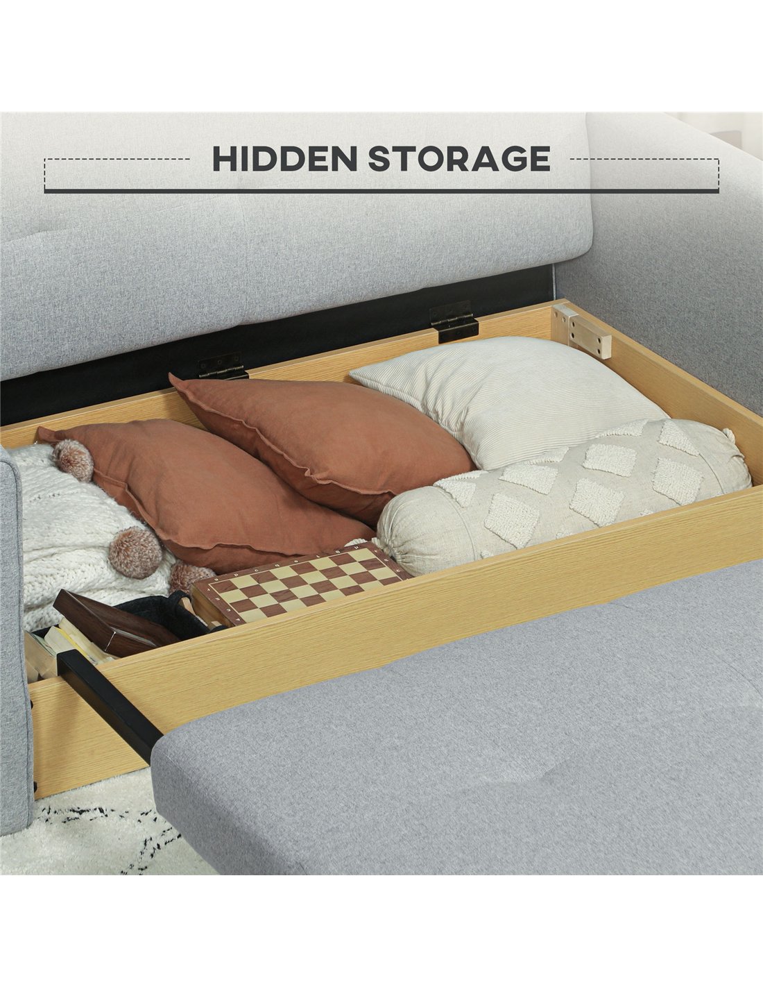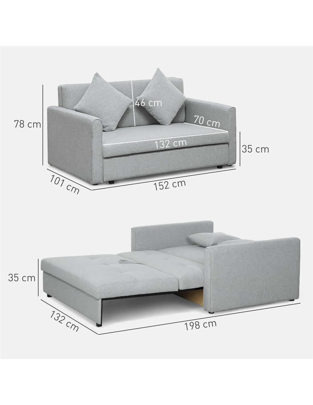 HOMCOM 2 Seater Sofa Bed, Convertible Bed Settee, Modern Linen Loveseat Sofa Couch with 2 Cushions, Hidden Storage for Living Room, Guest Room, Light Grey