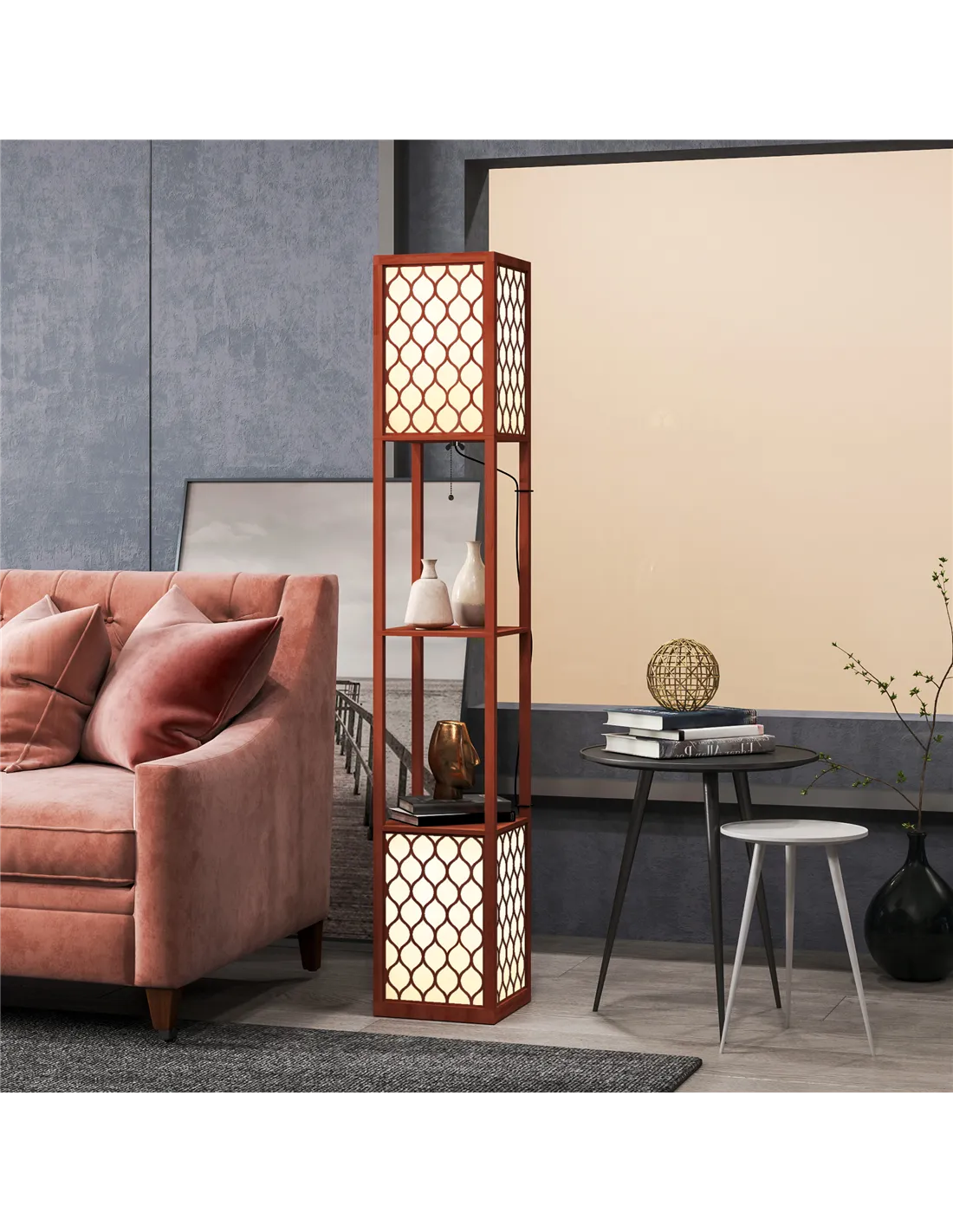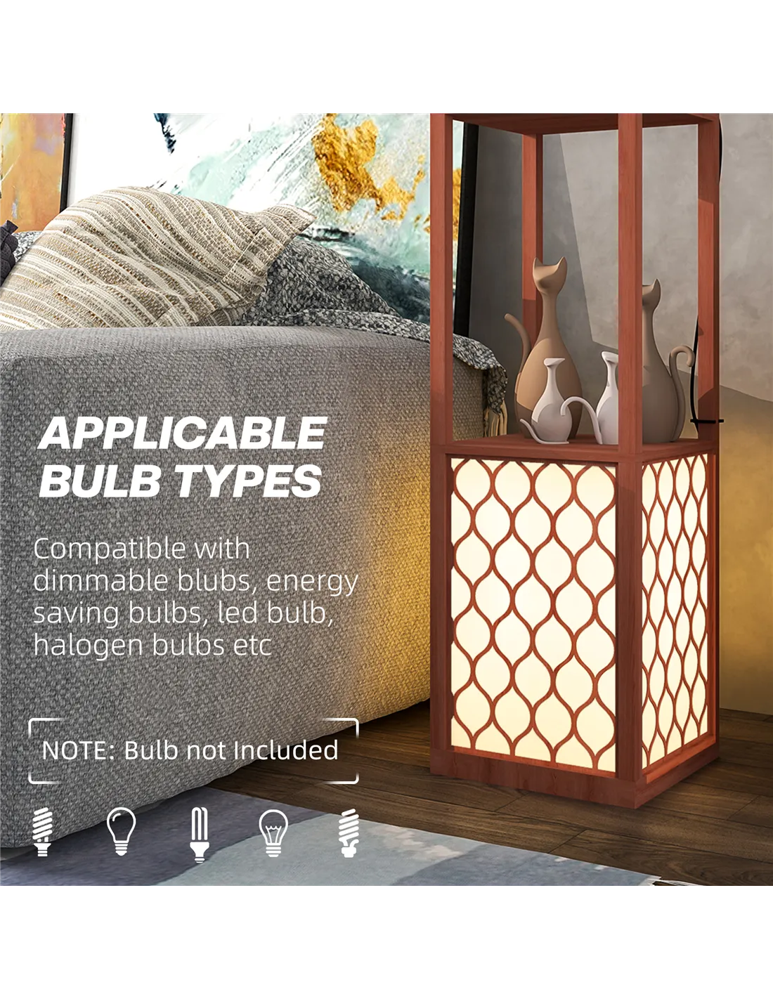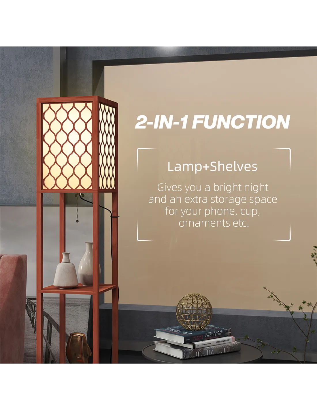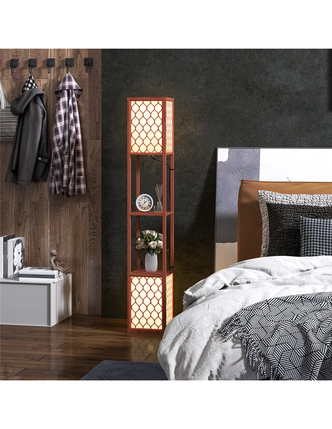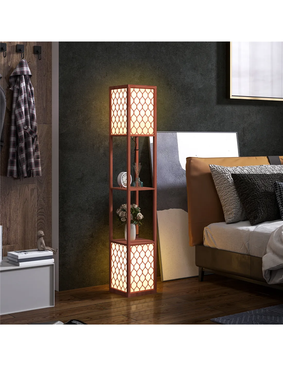 The HOMCOM Duo Light Floor Shelves in brown is a versatile addition to any living space, combining ambient lighting with practical storage. Ideal for cosy reading nooks, this floor lamp enhances your favourite corner with a warm, soft glow thanks to its geometric honeycomb lampshades. Use the two sturdy shelves to display books, plants, or decorative items, keeping essentials within easy reach. Its slim, tall profile fits effortlessly into narrow spaces, making it perfect for apartments, home offices, or bedrooms where space is limited. The neutral brown finish complements a variety of interior styles, from modern minimalist to rustic charm.