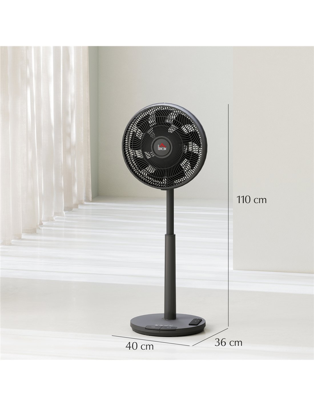 Discover the quiet comfort of the HOMCOM standing fan, featuring a DC motor that ensures energy-efficient, whisper-soft airflow. With three modes including a sleep setting and 12 speeds all easily managed by remote, enjoy a tailored breeze anytime. Plus, oscillating function, adjustable tilt head and adjustable height make this stand up fan a breeze to cool any corner of your room.