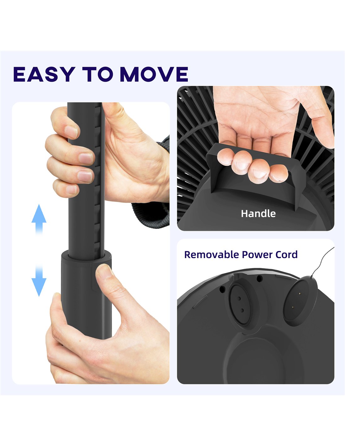 - DC motor ensures quiet and strong airflow, while energy-saving and long service life