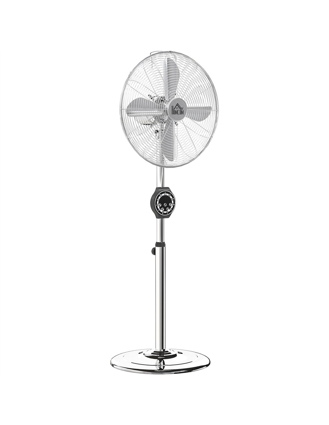 HOMCOM 16" Metal Pedestal Fan with Oscillating, Adjustable Height - Silver Tone