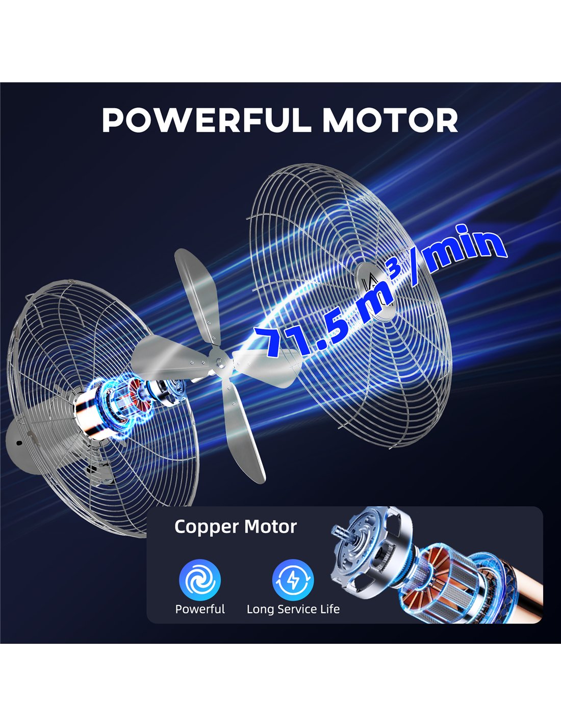 - Max Wind: 71.5 m³/min
