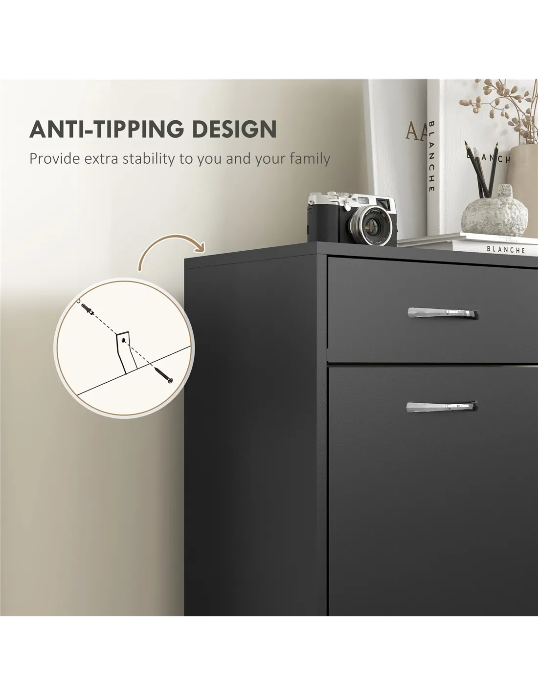 - Anti-tipping straps included for safety