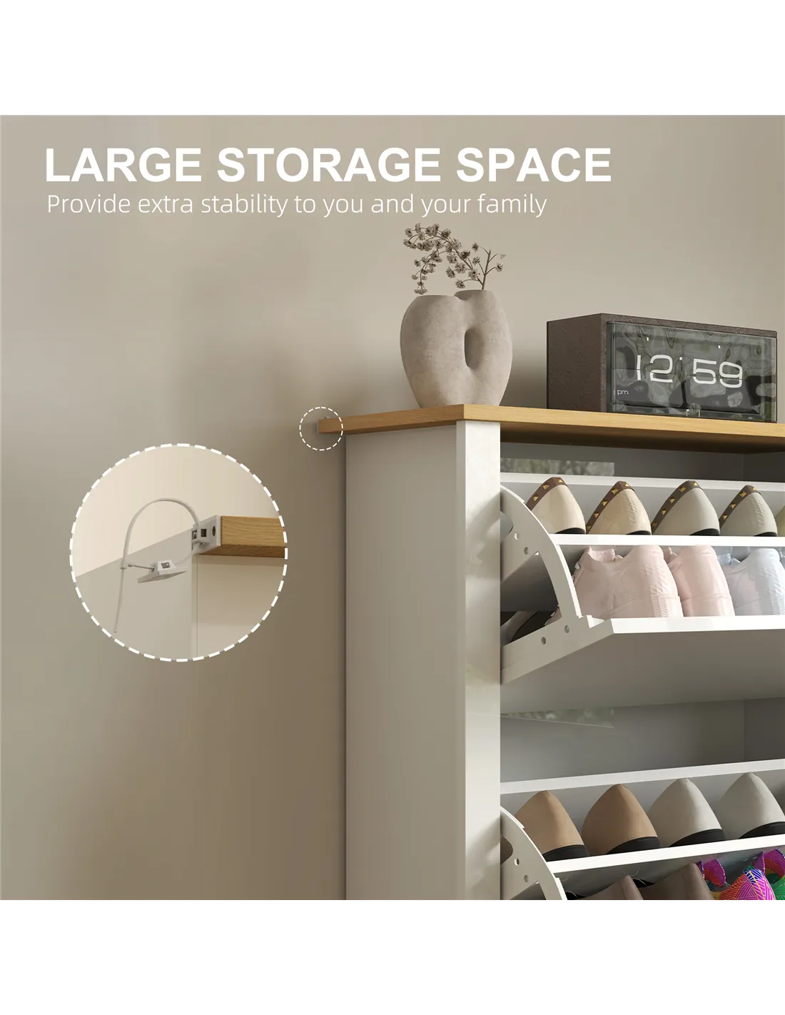 A: Yes, assembly is required. The package includes detailed instructions to guide you through the process. - Q: Can the cabinet accommodate larger shoe sizes?