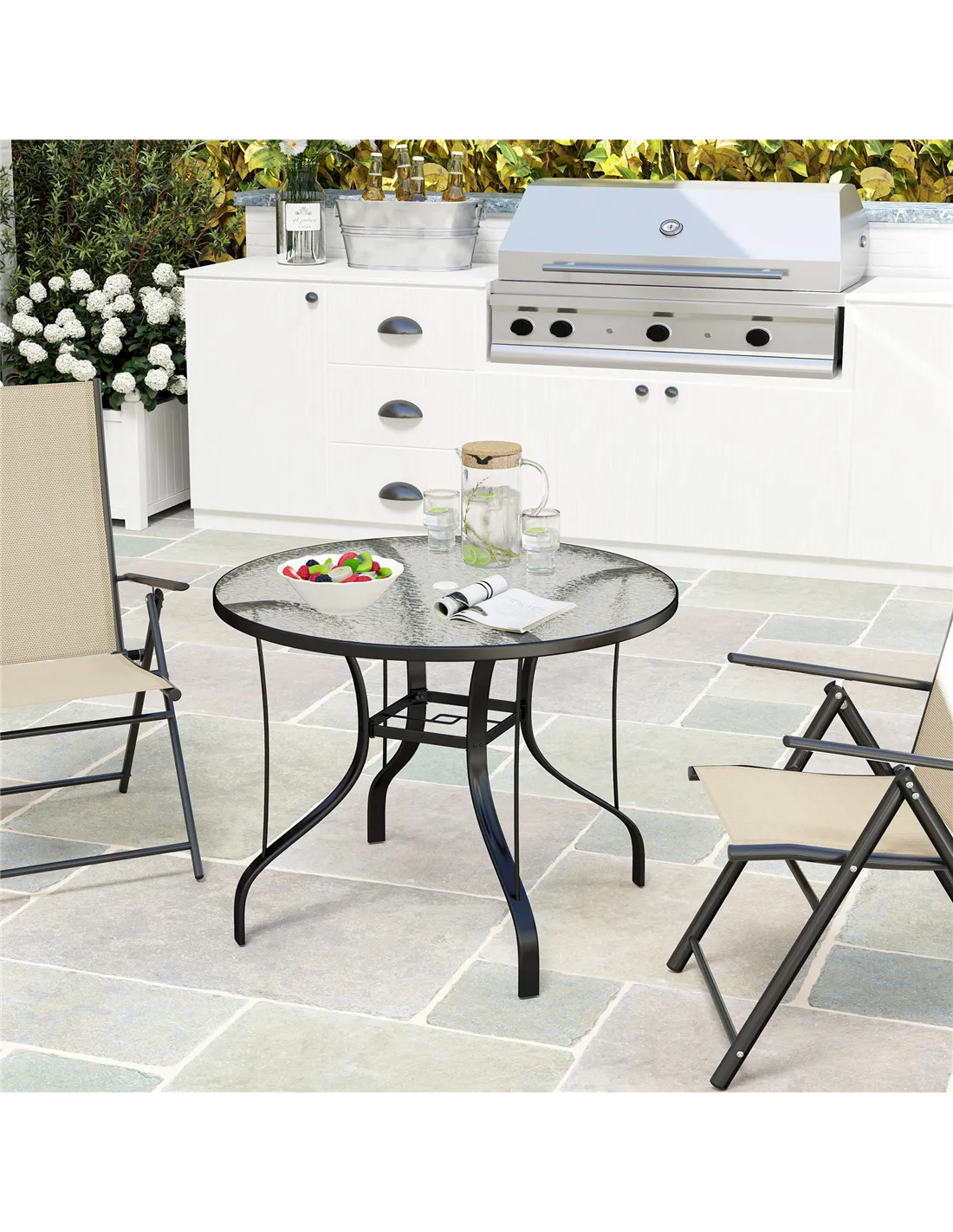 Outsunny Tempered Glass Top Round Outdoor Dining Table with Parasol Hole, 96.5 x 96.5 x 71 cm