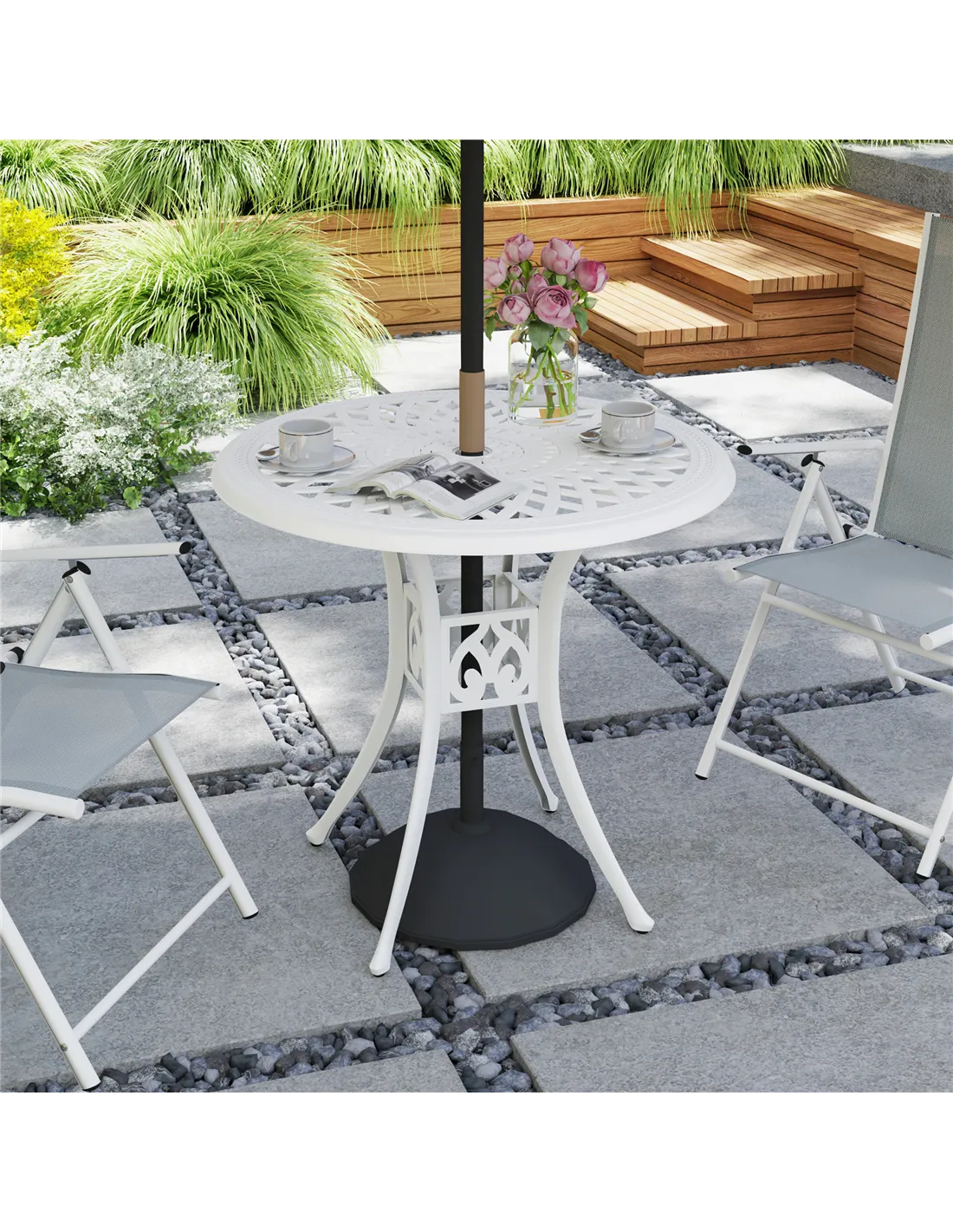- Central umbrella hole for your garden parasol