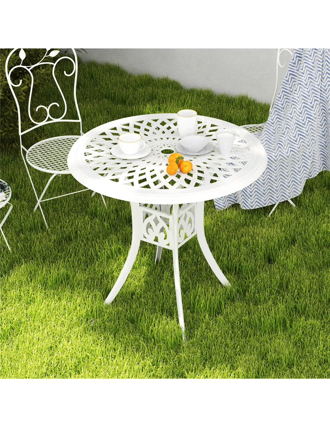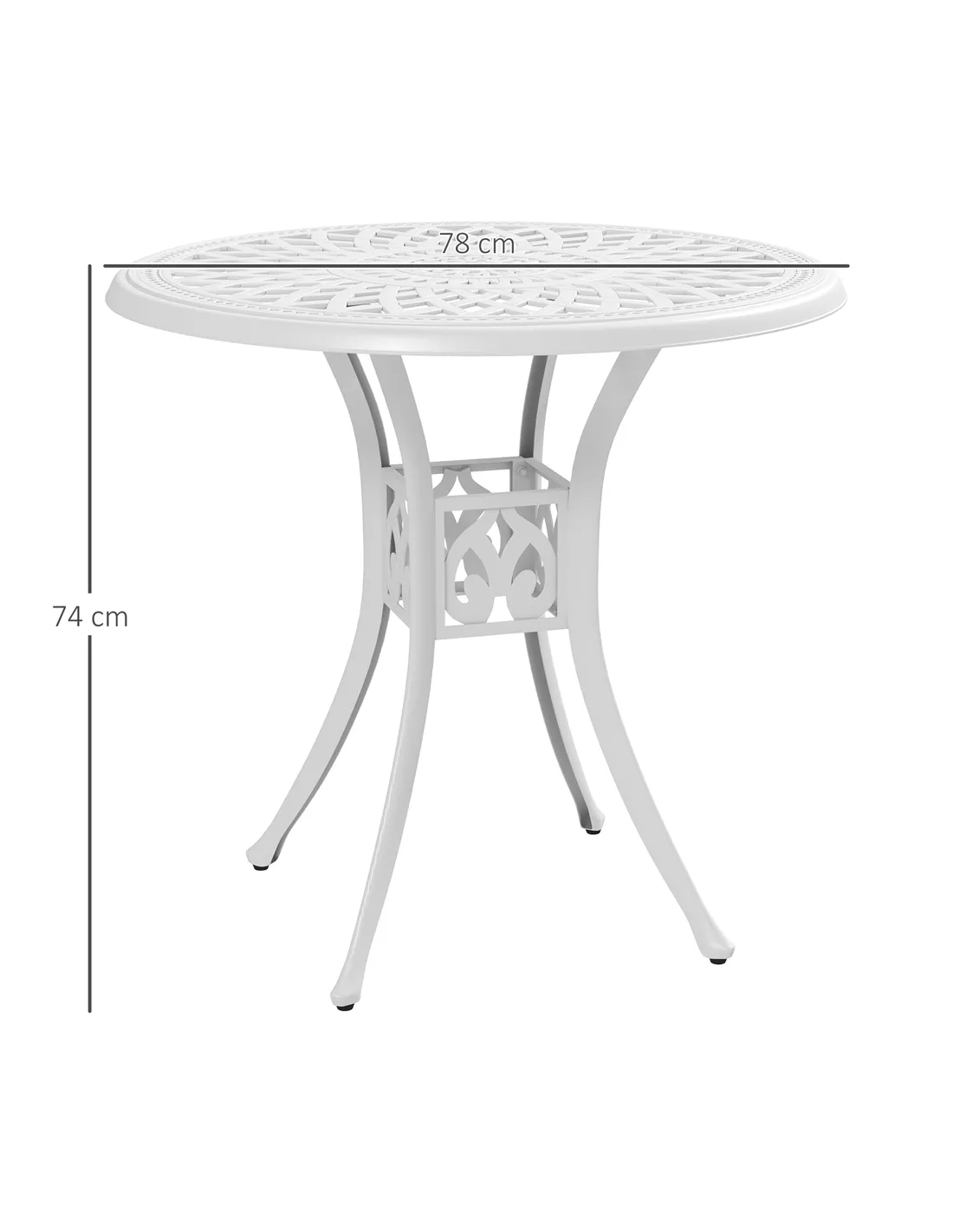 Outsunny 78 cm Round Garden Dining Table with Parasol Hole Antique Cast Aluminium Outdoor Table Only, White