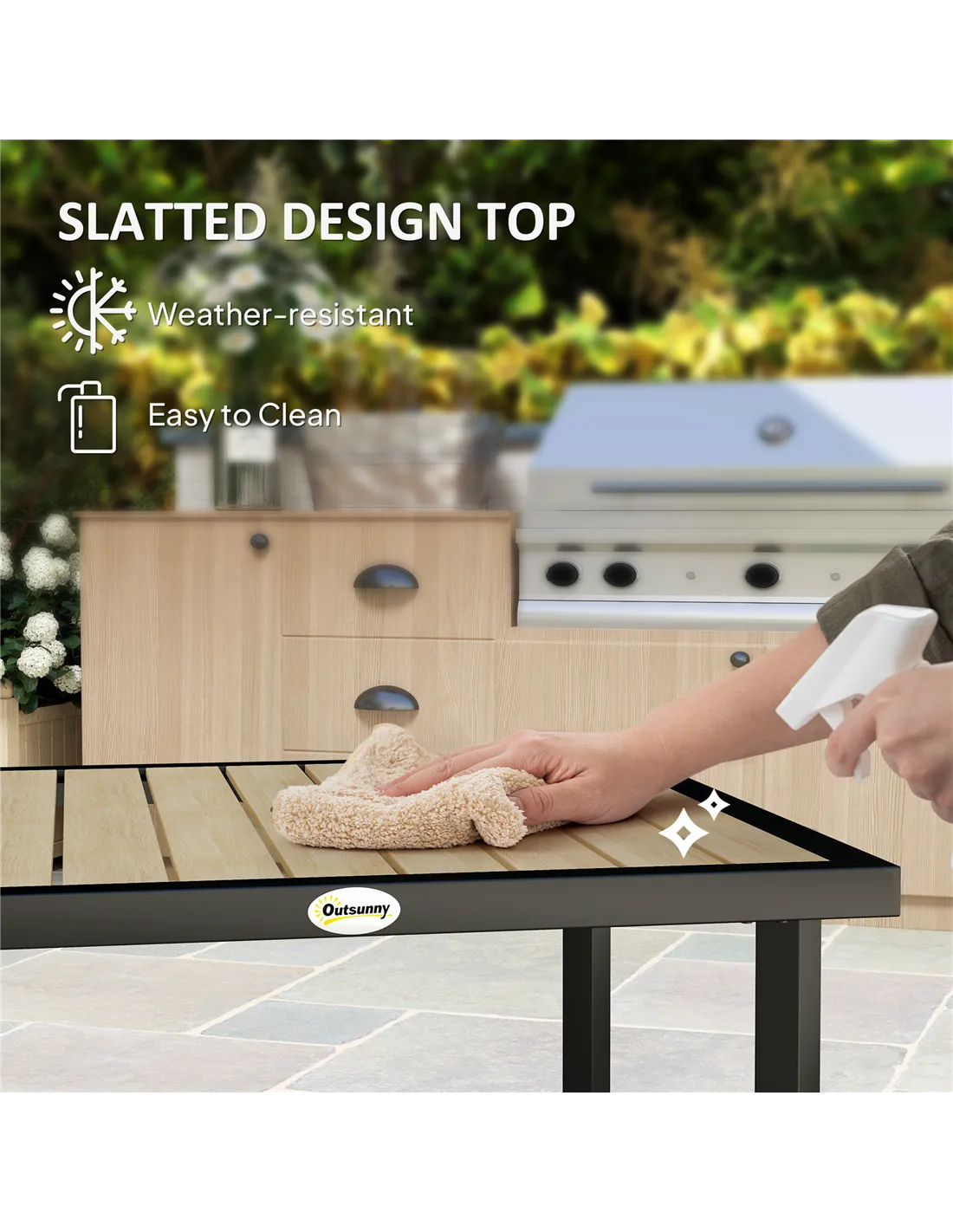 - Slated tabletop so water doesn't build up