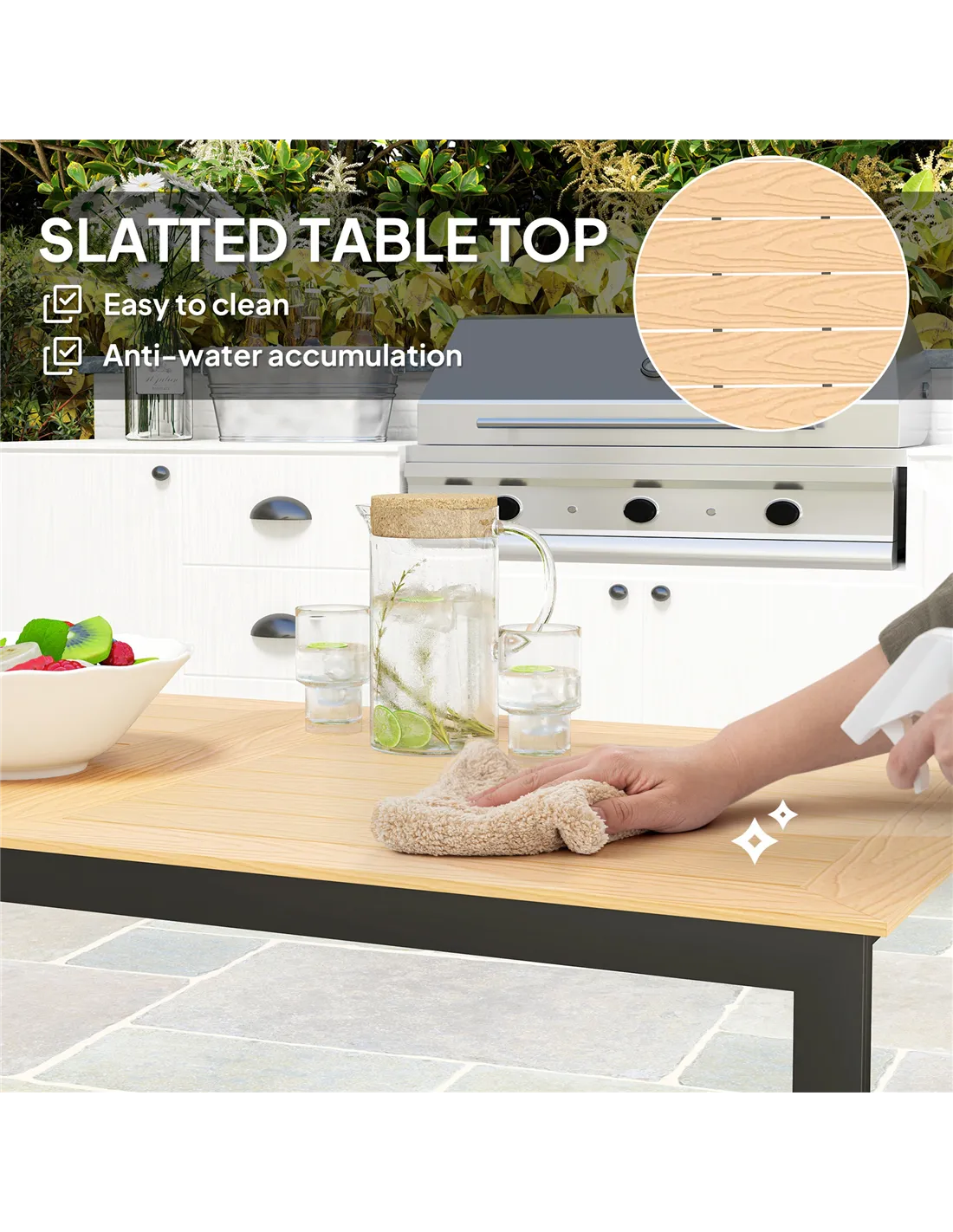 - Suitable for casual brunches, evening barbecues, or as a stylish base for potted plants and garden accessories.