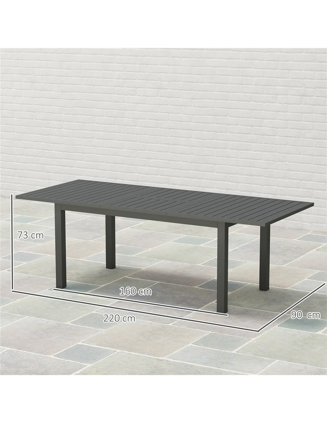 Outsunny Aluminium Extending Garden Table with Slatted Top for 6-8 Person, 160/220 x 90 x 73 cm, Grey