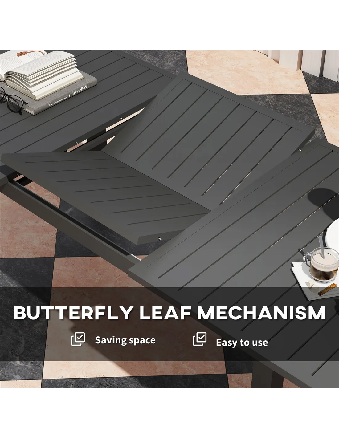 This Outsunny outdoor table comes in an extendable design - the six-seater size extends to an eight-seater: great for when you need to welcome more people to the table; it's easy to expand with the butterfly leaf mechanism. Made from aluminium, this is a tough table suitable for outdoor use.
