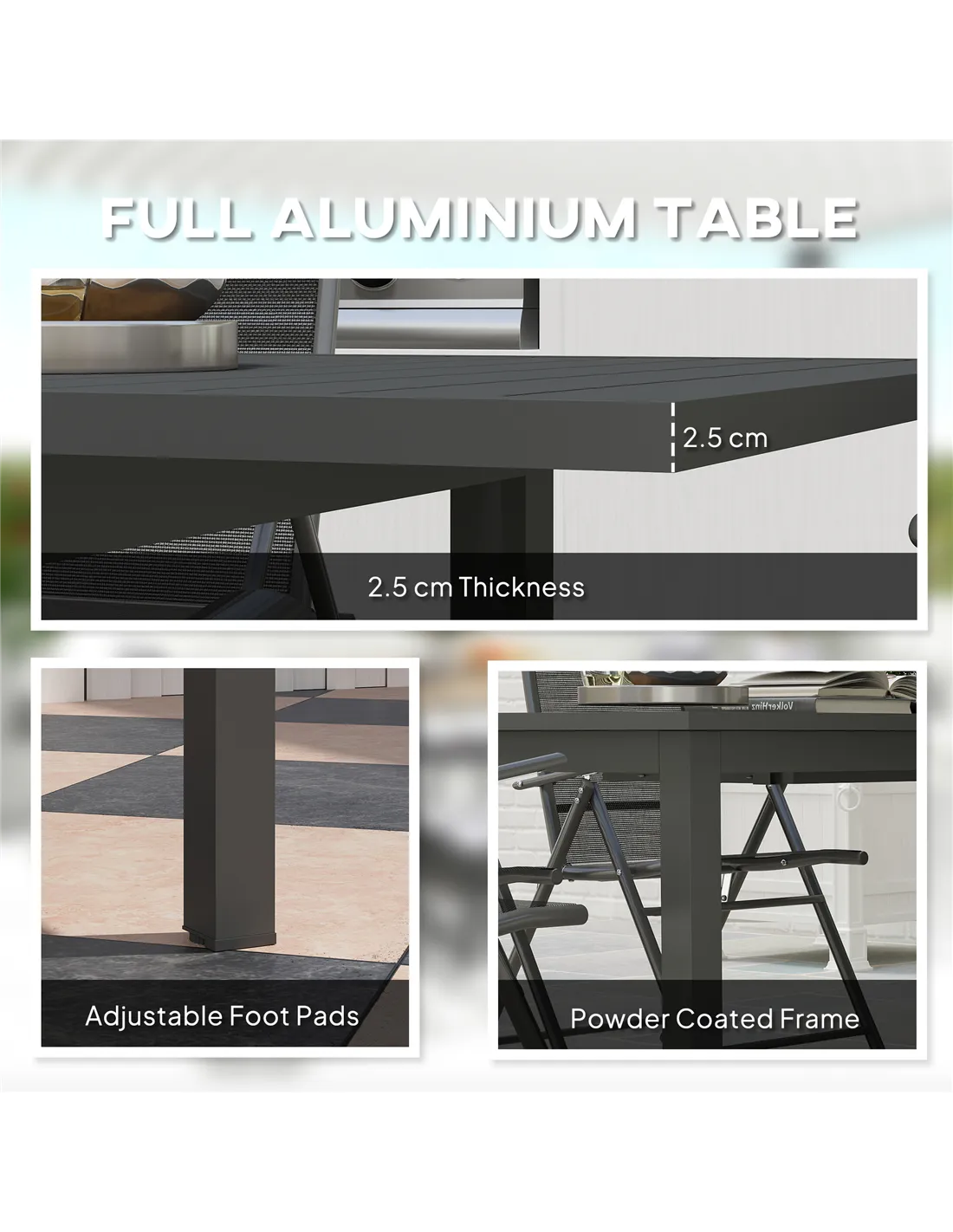 - Powder-coated aluminium frame enhances outdoor durability