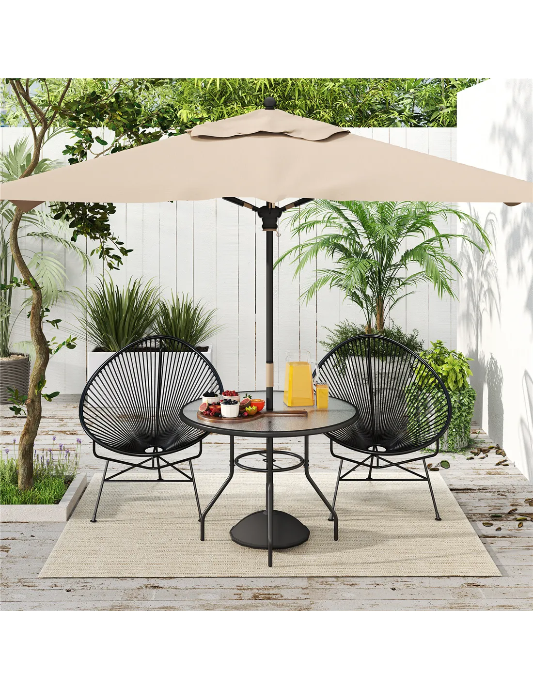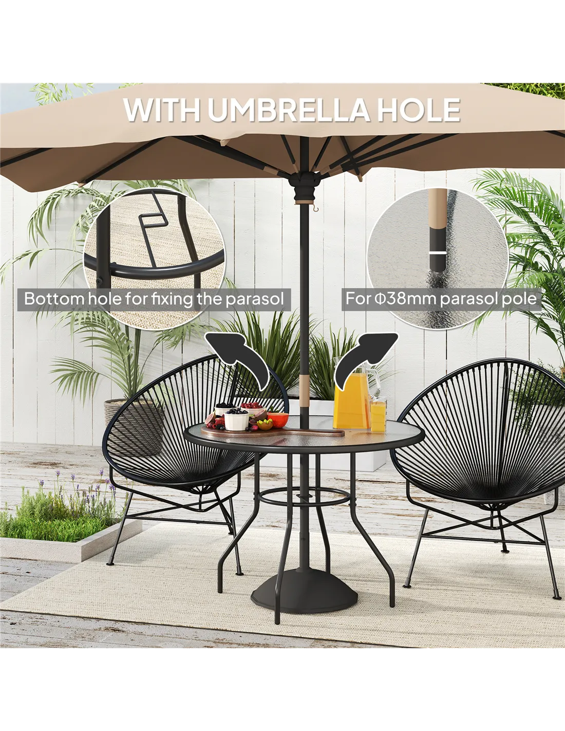 Outsunny Glass-Top Garden Table, with Parasol Hole - Black