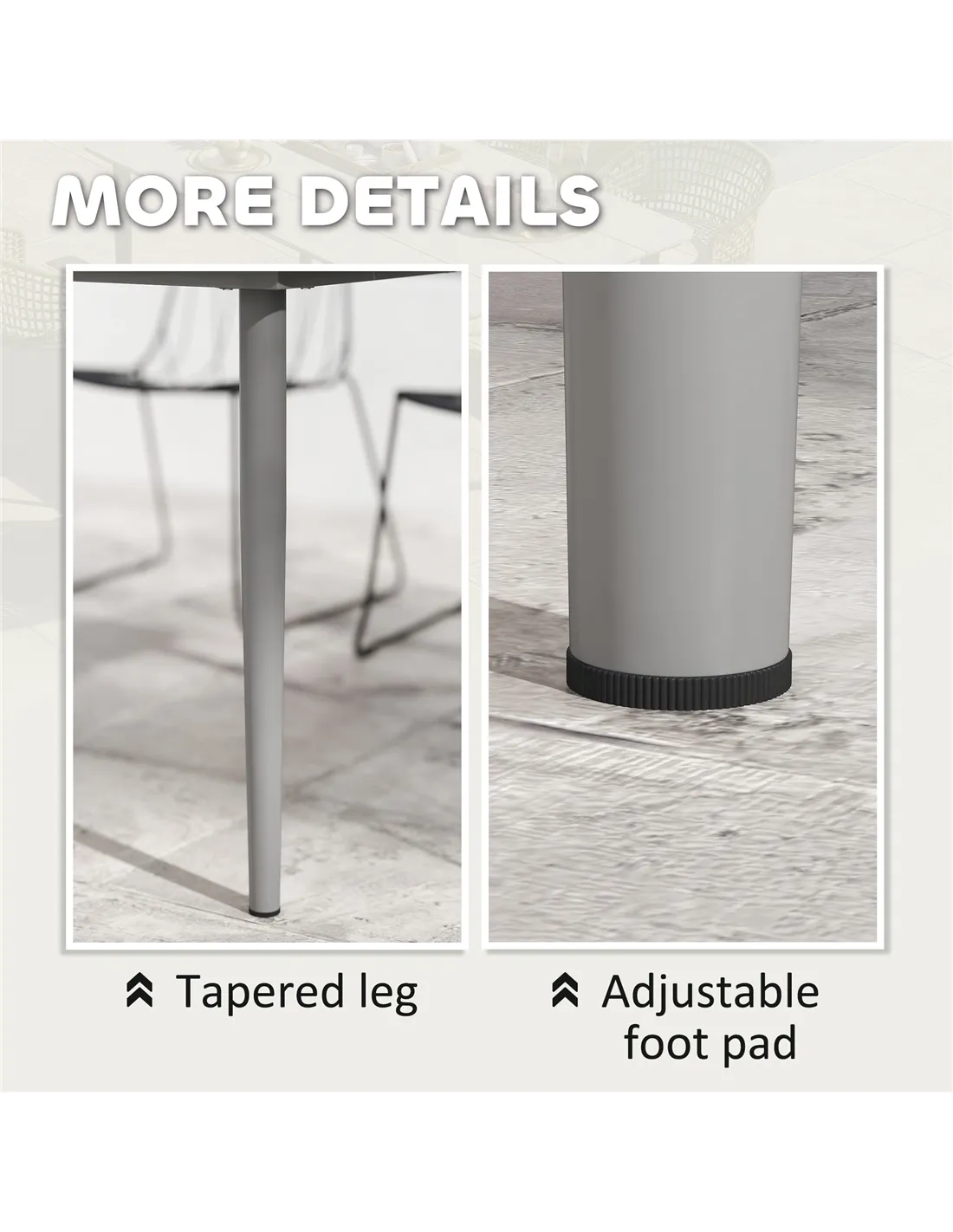 - Perfect for alfresco dining on balconies, terraces, or patios, comfortably accommodating six guests.