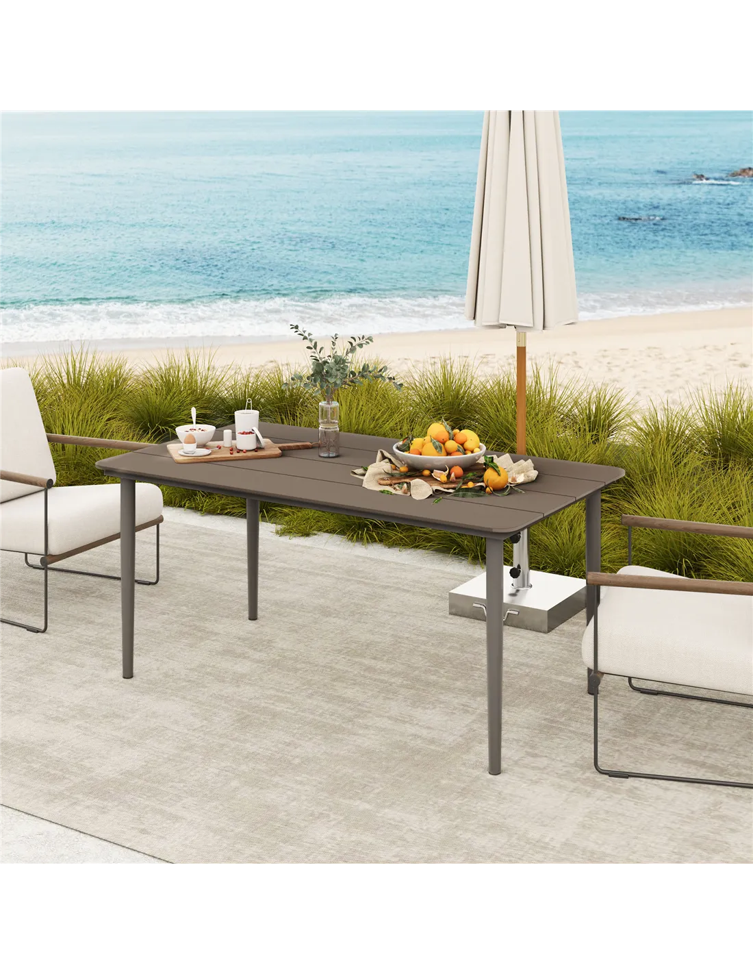 - Seats six comfortably for family meals outdoors