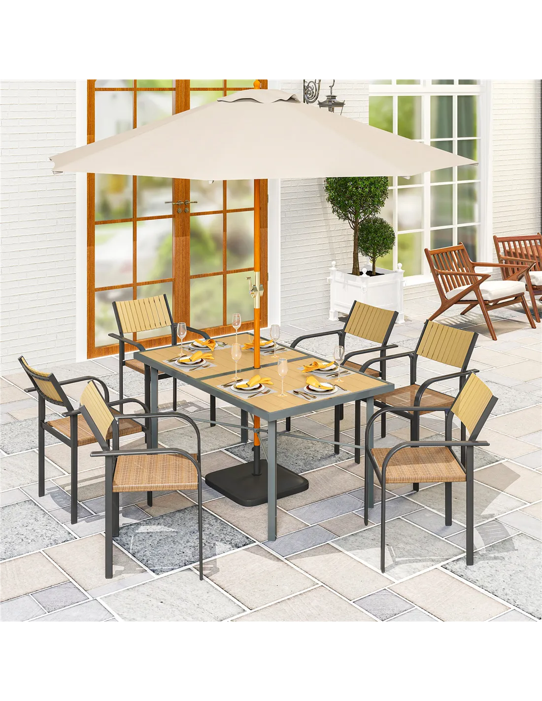 Absolutely. The table features a 5 cm diameter umbrella hole (Φ43-50mm), compatible with most standard parasols to provide shade and protection. - What is the return policy for this product?