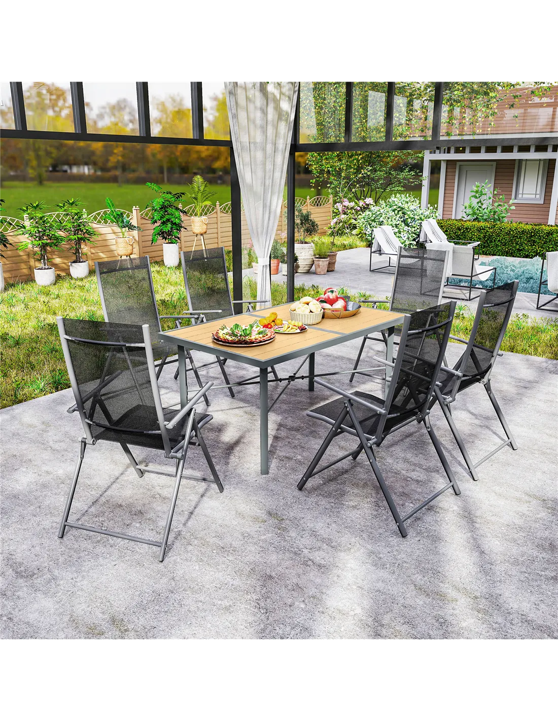 - Accommodates six people for family meals and gatherings