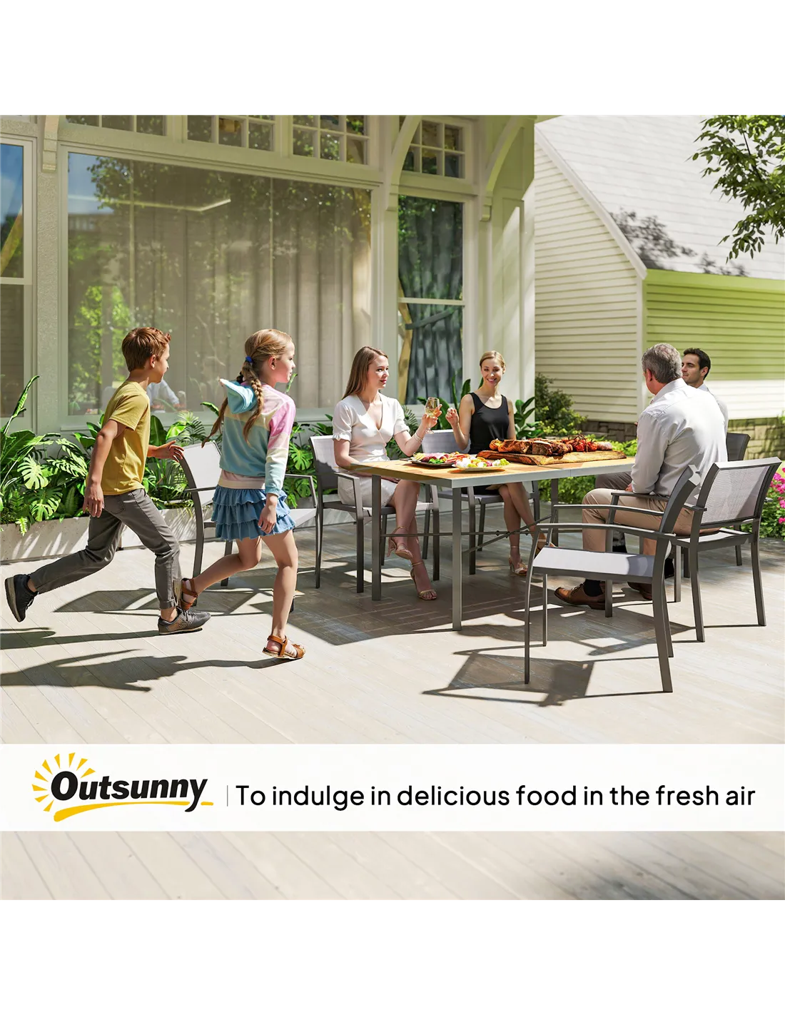 The Outsunny garden table is perfect for a variety of outdoor settings, including patios, balconies, and terraces. Its natural wood finish and rectangular design create a welcoming space for alfresco dining, whether hosting family meals or casual gatherings with friends. The integrated umbrella hole allows for easy installation of a parasol, providing shade on sunny days and shelter during light rain. This table also works well as a versatile surface for outdoor hobbies, gardening tasks, or as a stylish addition to your outdoor workspace. Thanks to its rust-resistant steel frame and slatted wood-effect top, it remains durable and low-maintenance throughout the seasons.