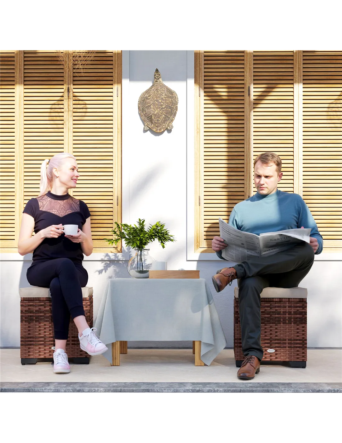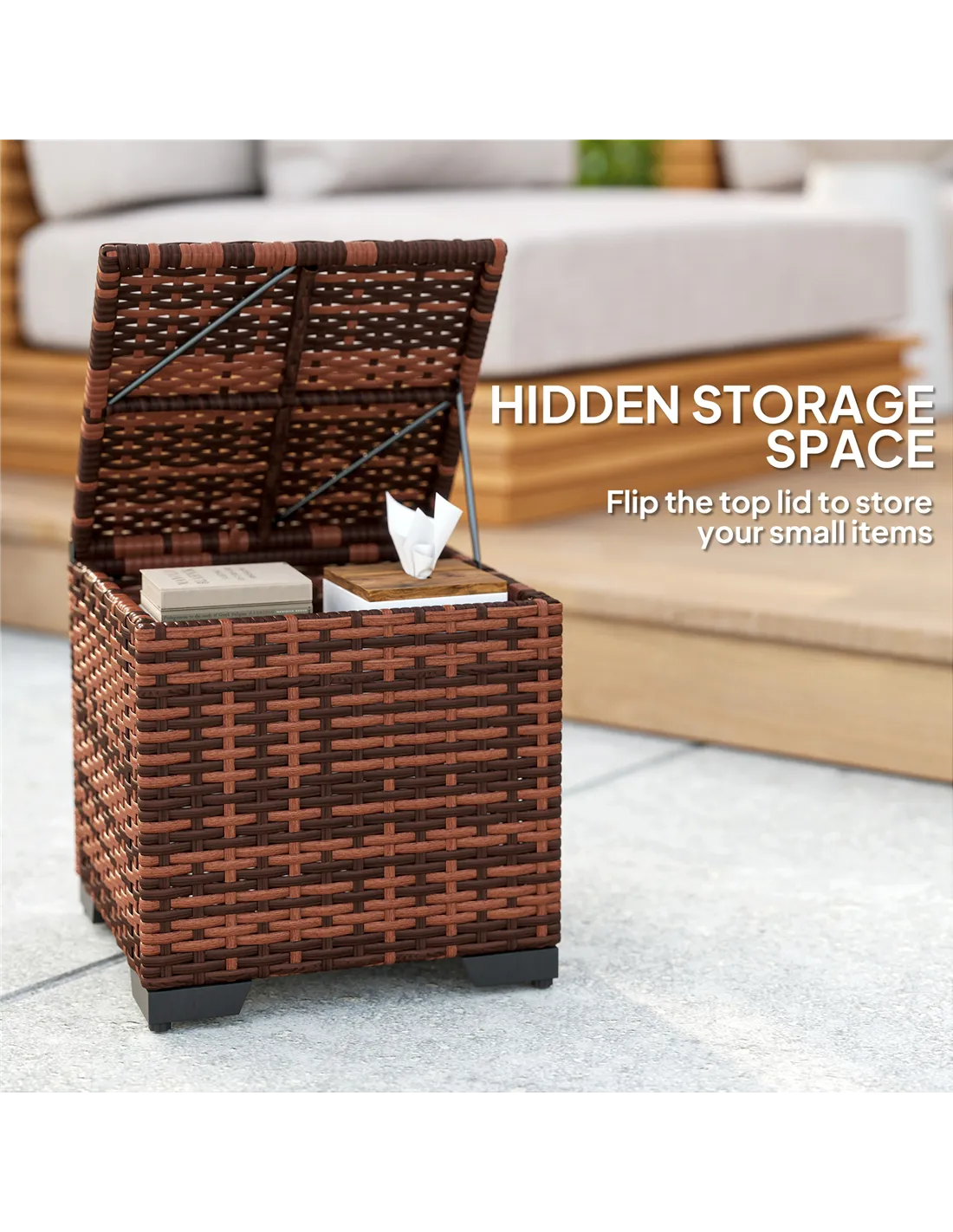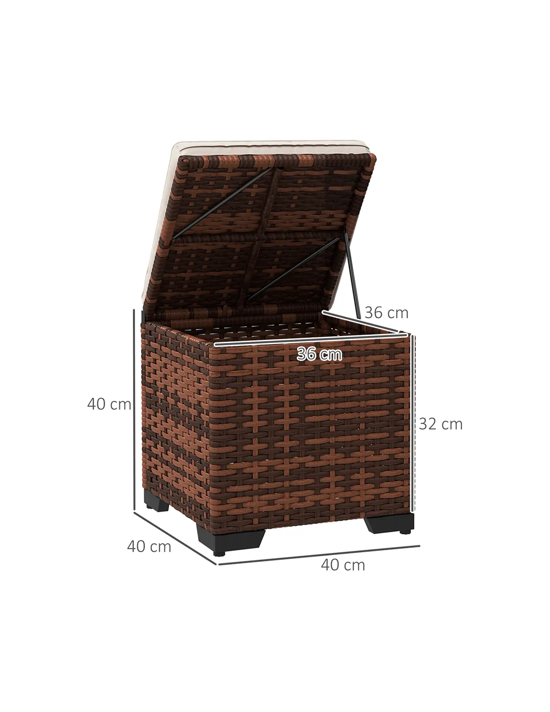 Discover the charm of Outsunny's rattan garden stool, blending style and functionality. Its lift-off lids reveal lots of storage for all your bits and bobs, from books to gardening tools. Enjoy upgraded comfort with thick, cushy seats that easily zip off for cleaning. This versatile piece serves wonderfully as a small footstool or extra seating, crafted to endure the elements with a robust steel frame.