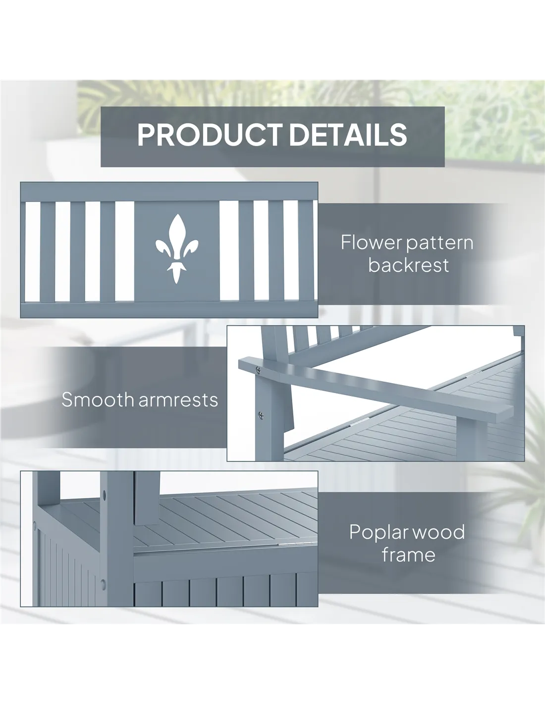 Based on reviews from UK customers, the Outsunny two-seater wooden storage bench is praised for its sturdy build and elegant grey finish that complements various garden styles. Users appreciate the ample storage space beneath the seat, which keeps their outdoor areas organised and clutter-free. Many highlight the comfort provided by the high backrest and armrests, making it a favourite spot for relaxation. The ease of assembly and the bench’s durability under different weather conditions have also been positively noted. Outsunny - a recognised brand in garden and outdoor furniture & accessories across the UK - continues to deliver quality and reliability with this model.