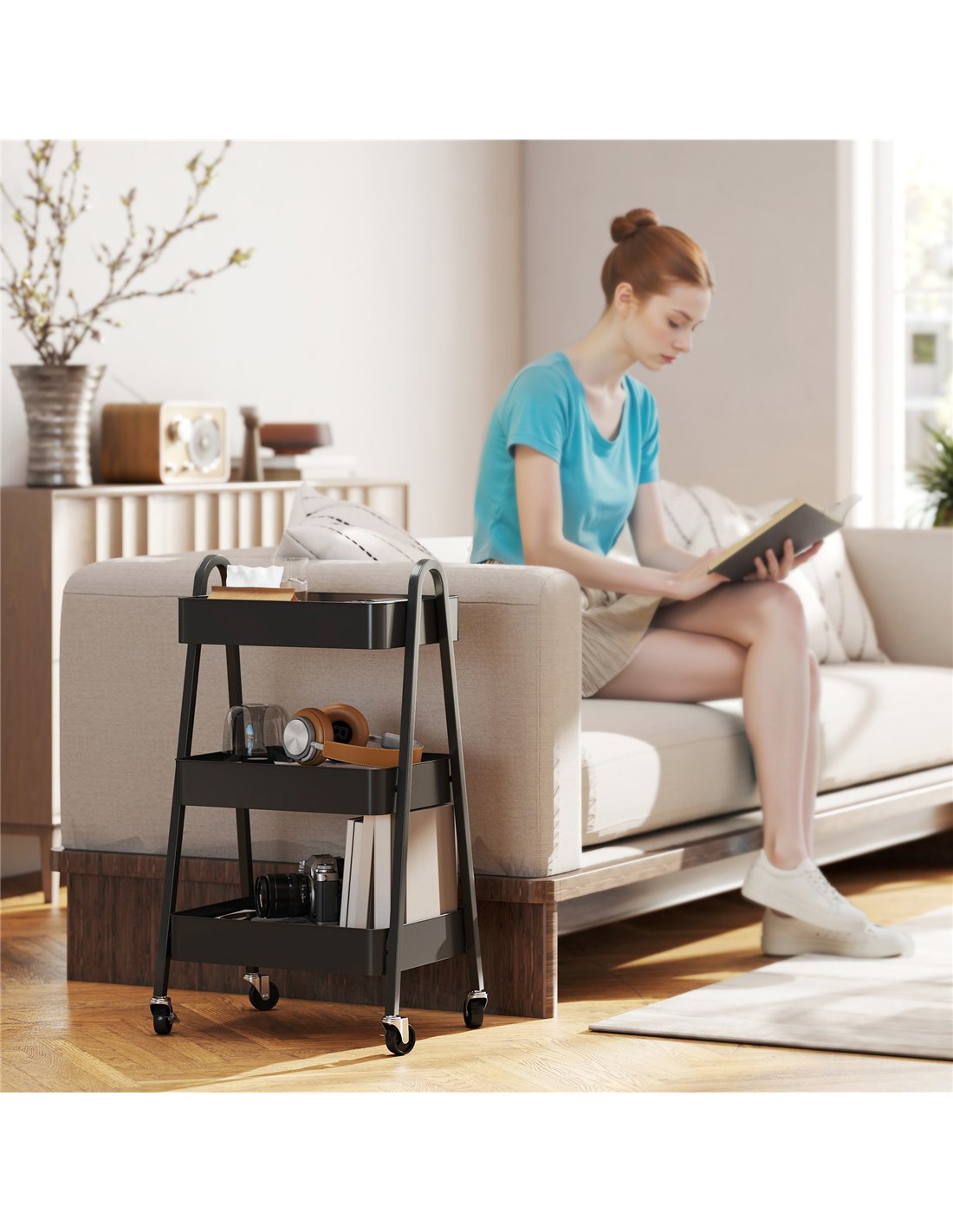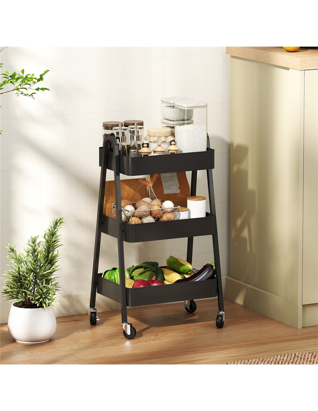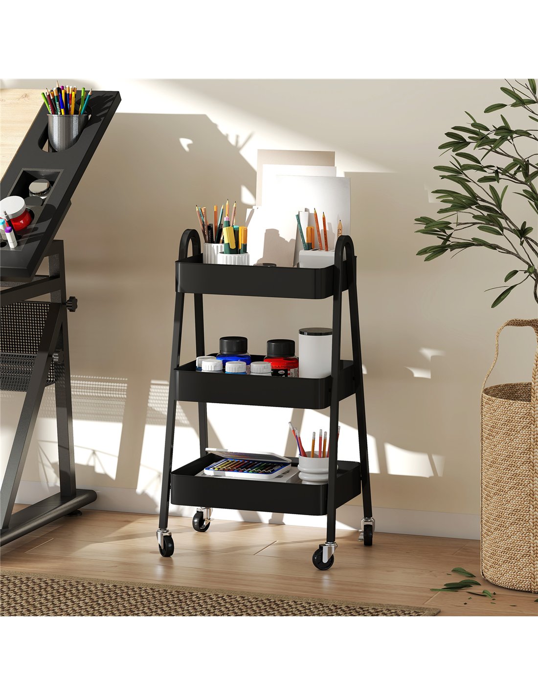 HOMCOM Three-Tier Storage Trolley - Black