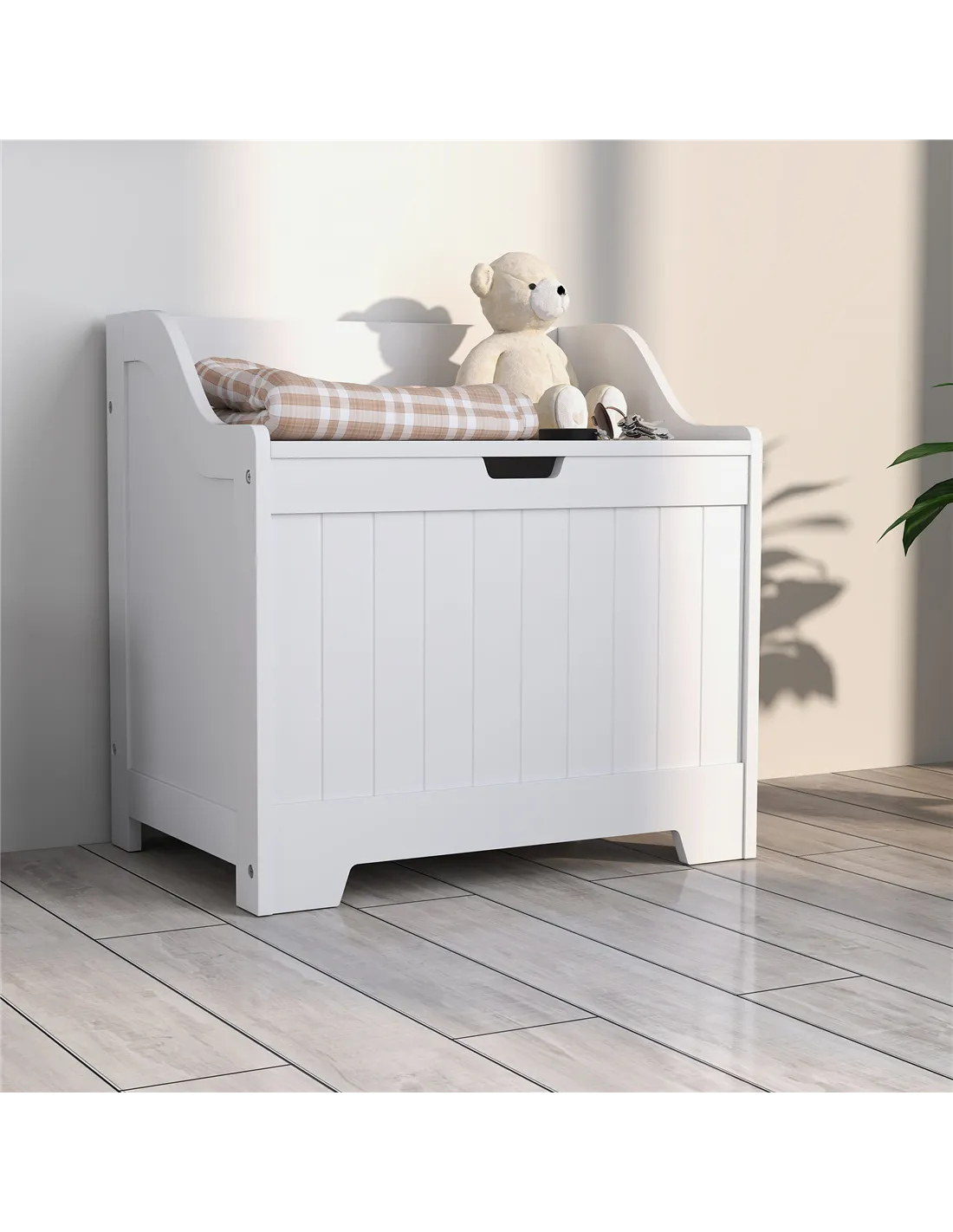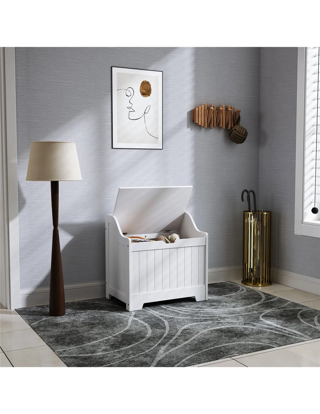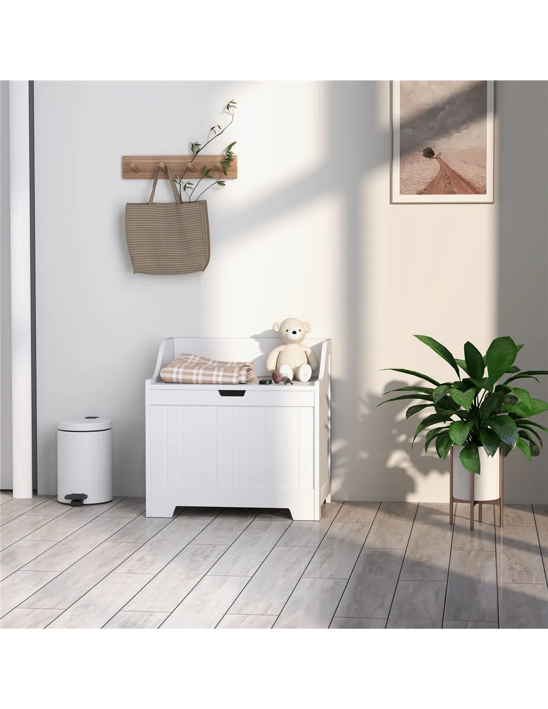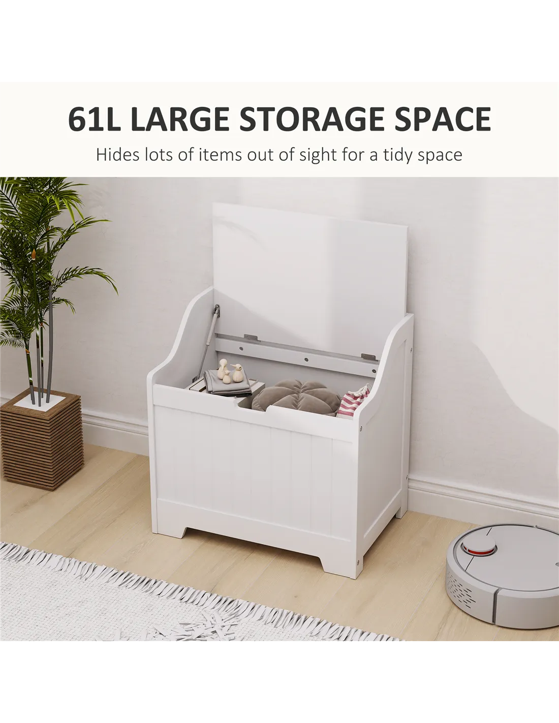 The HOMCOM 61L storage chest is a versatile addition to any British home, ideal for organising a variety of household items. Use it in the living room to store cushions, throws, or magazines, keeping your space clutter-free. In bedrooms, it serves perfectly as a compact storage solution for clothing accessories or seasonal items. Its sturdy MDF construction and neutral white finish blend seamlessly with modern or traditional interiors. Thanks to the safety hinge and easy 'U' cut-out handle, it’s also suitable for family homes, providing safe and convenient access to stored belongings. Based on customer feedback, many find it useful as a toy box in children’s rooms or as extra storage in hallways for shoes and bags.