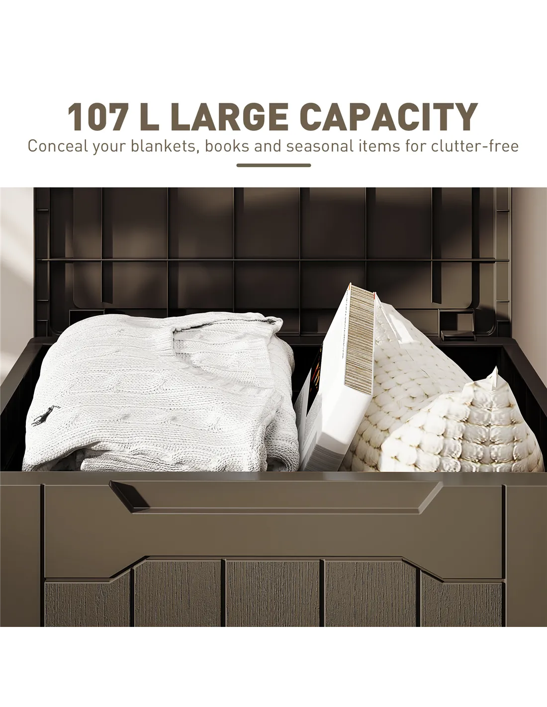 - 107 L large capacity hides your blankets, pillows and books out of sight