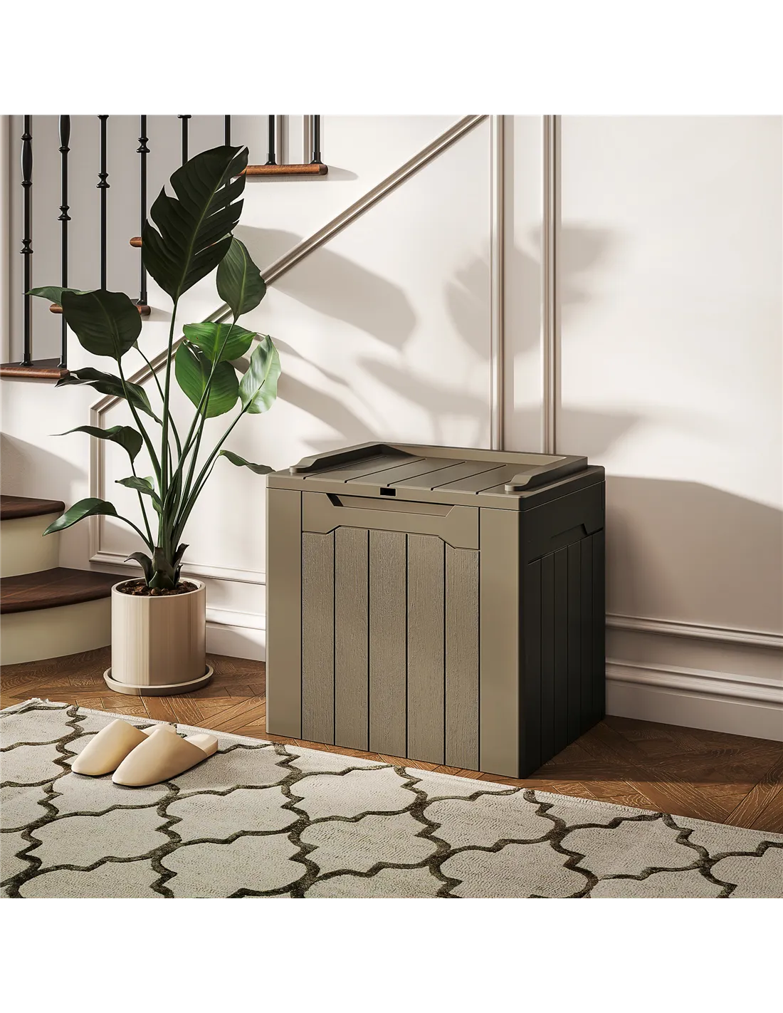 While made from moisture-resistant polypropylene, it is best suited for covered outdoor areas or indoor use to ensure longevity.