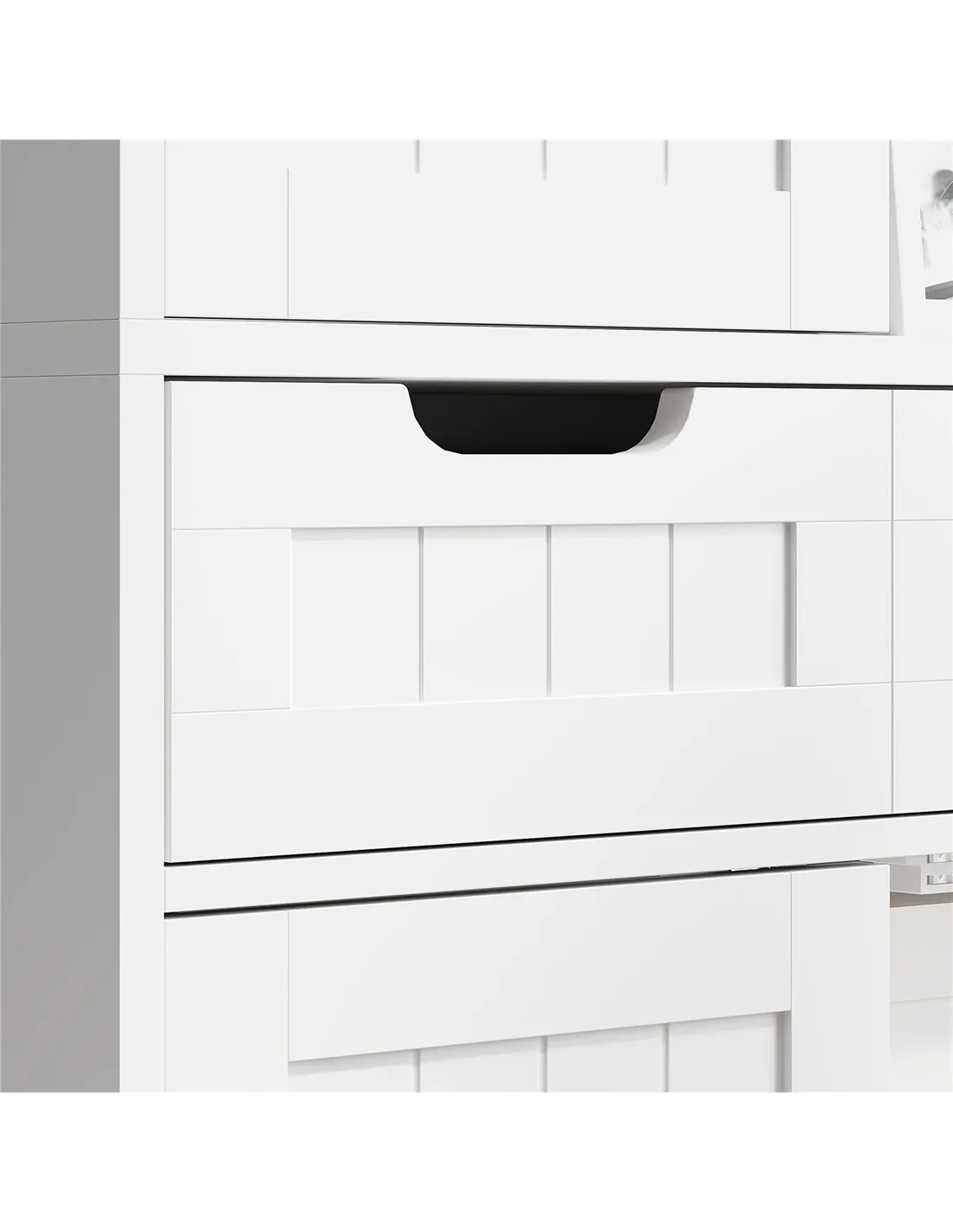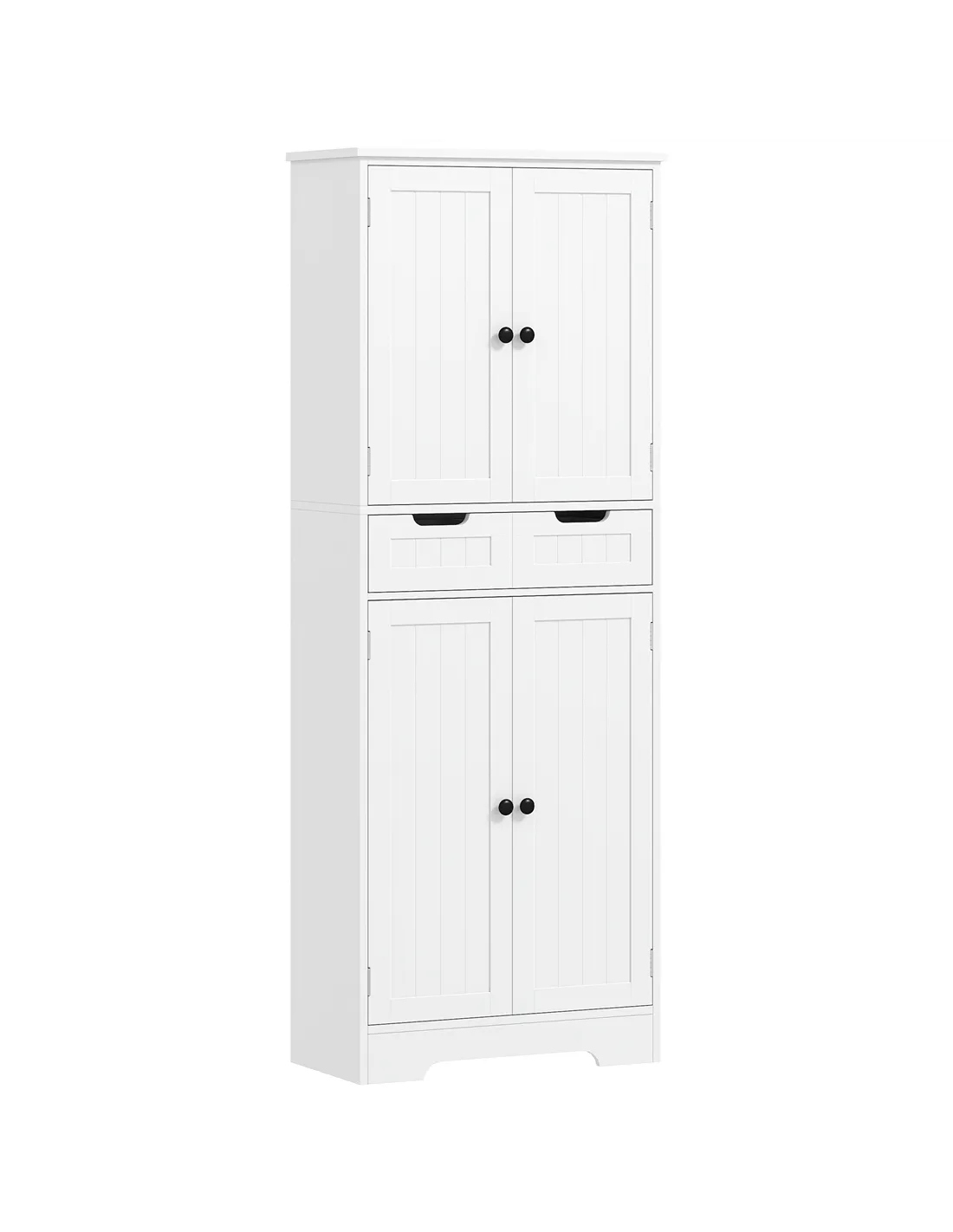 Plenty of storage with this HOMCOM bathroom tall cabinet. It comes with an upper and lower cupboard, plus a middle drawer for lots of storage. Not just for the bathroom, this tall cabinet also works great as a kitchen pantry or sideboard throughout the home.