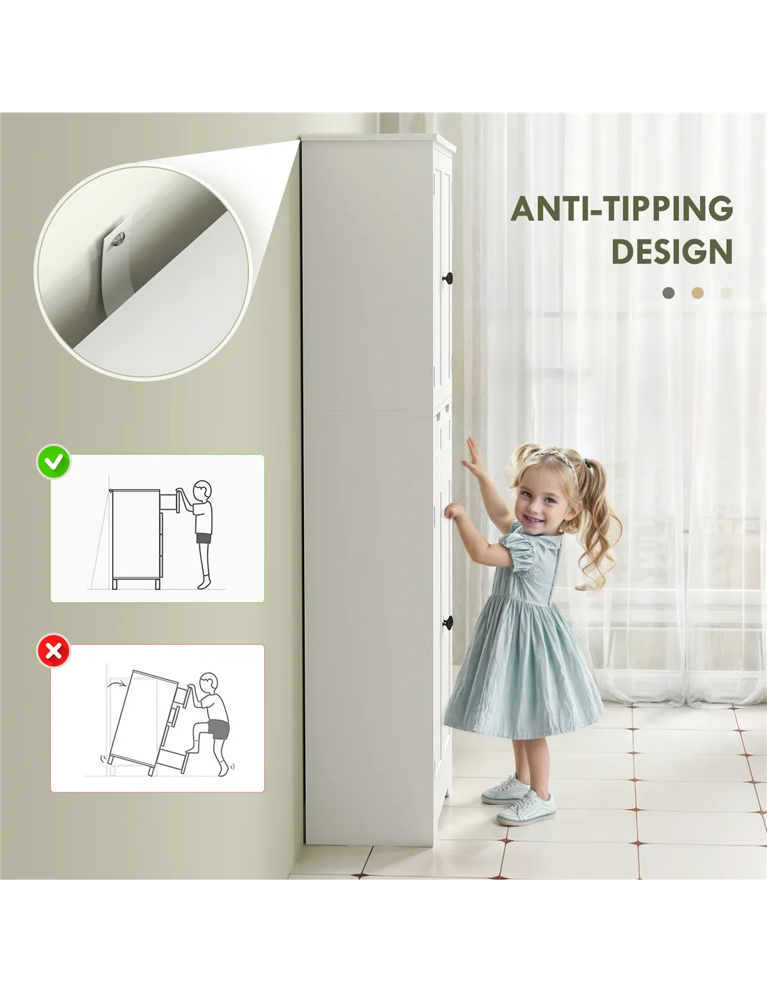HOMCOM Tall Bathroom Storage Cabinet - White