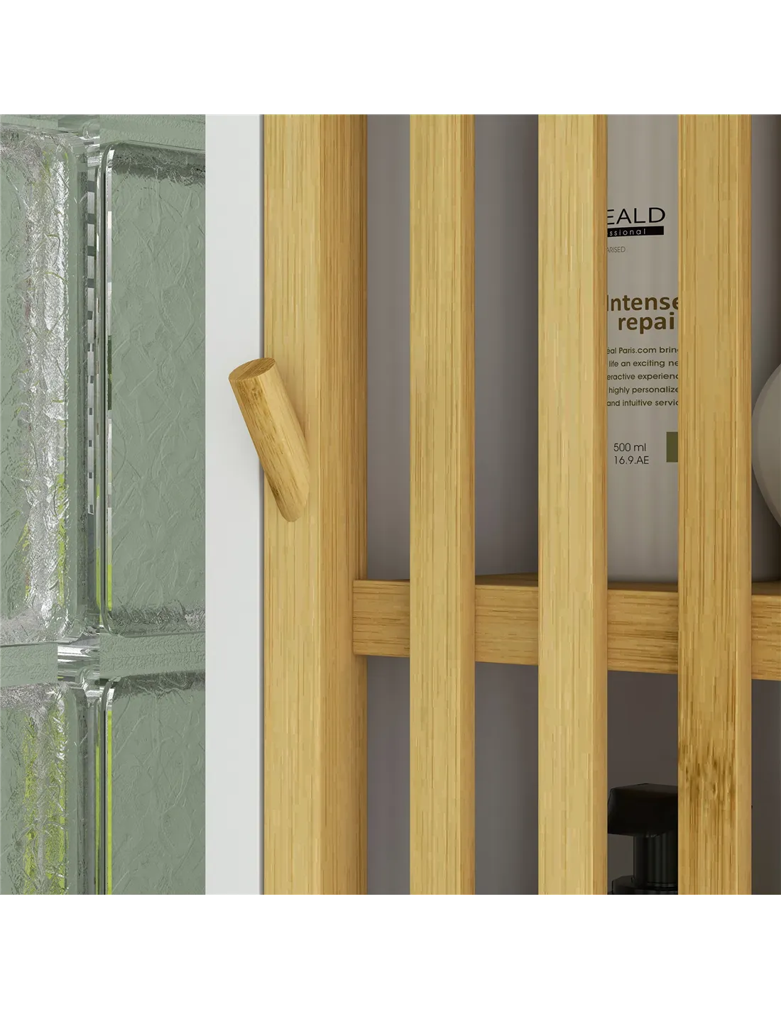 Designed to blend retro aesthetics with practical storage, this bamboo-blend bathroom cabinet is ideal for organising toiletries, towels, and cleaning essentials in compact spaces. Its slim profile fits neatly beside sinks or in narrow corners, making it perfect for small bathrooms or en-suites. The adjustable shelf inside the cupboard allows customisation to accommodate taller bottles or stacked items, while the open shelves provide easy access to frequently used products. Thanks to its elevated base, it also suits damp environments by preventing moisture damage and simplifying floor cleaning. Beyond the bathroom, this versatile unit can serve as a stylish storage solution in utility rooms or hallways, adding a natural touch to your home décor.