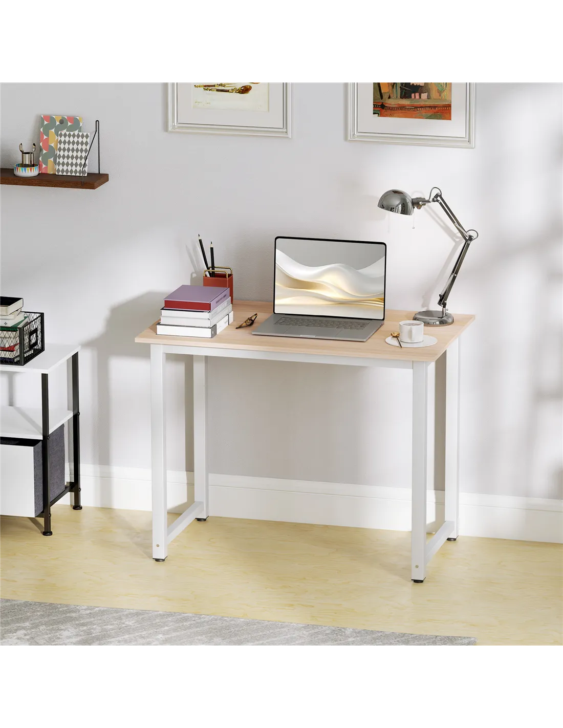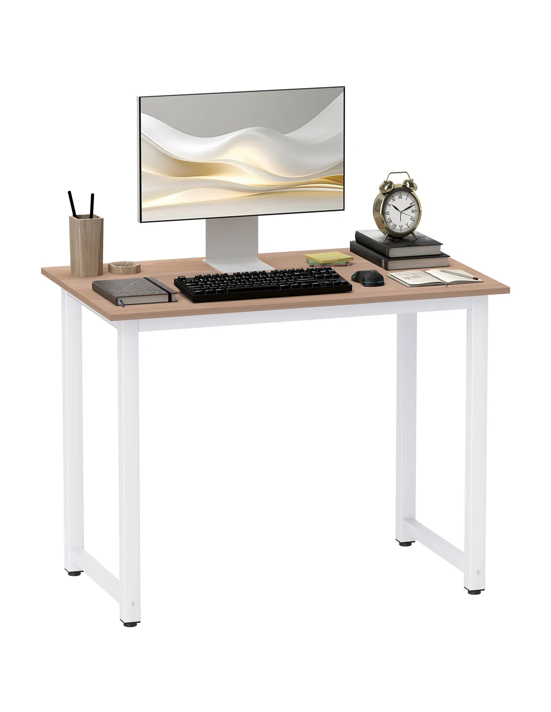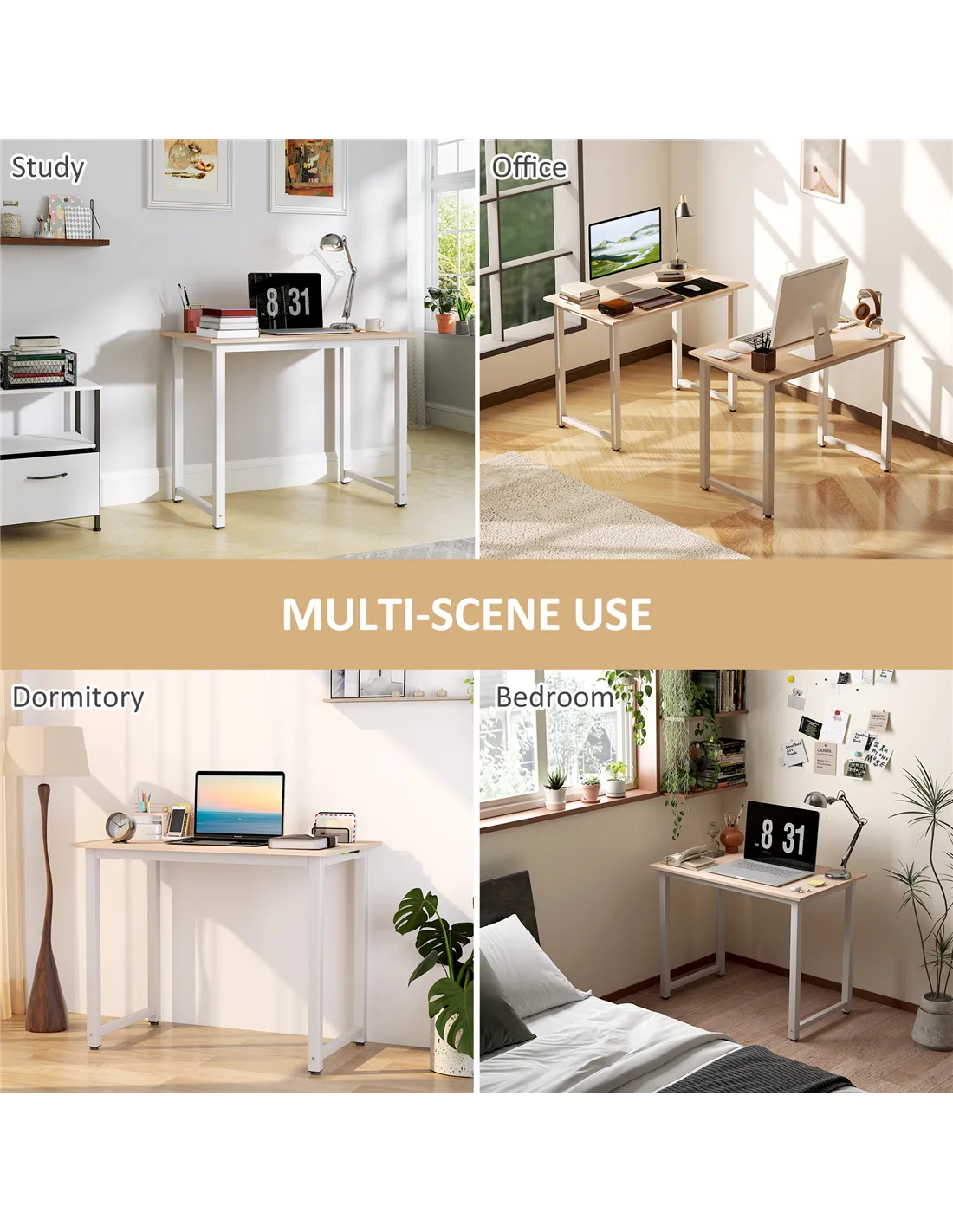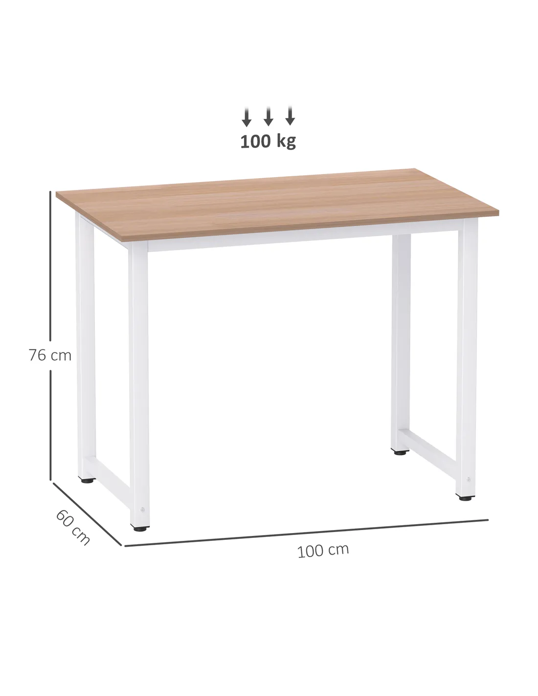 HOMCOM Computer Desk, Writing Table, 100 x 60 x 76cm Workstation for Home Office, Study with Metal Frame, Simple Assembly, White
