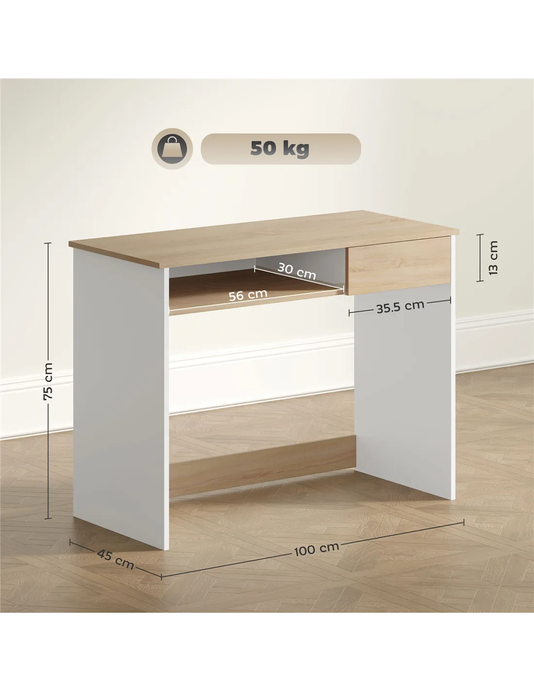 The desk has a weight capacity of 50 kg overall, suitable for most home office setups including dual monitors and peripherals. - What is the return policy if I am not satisfied?