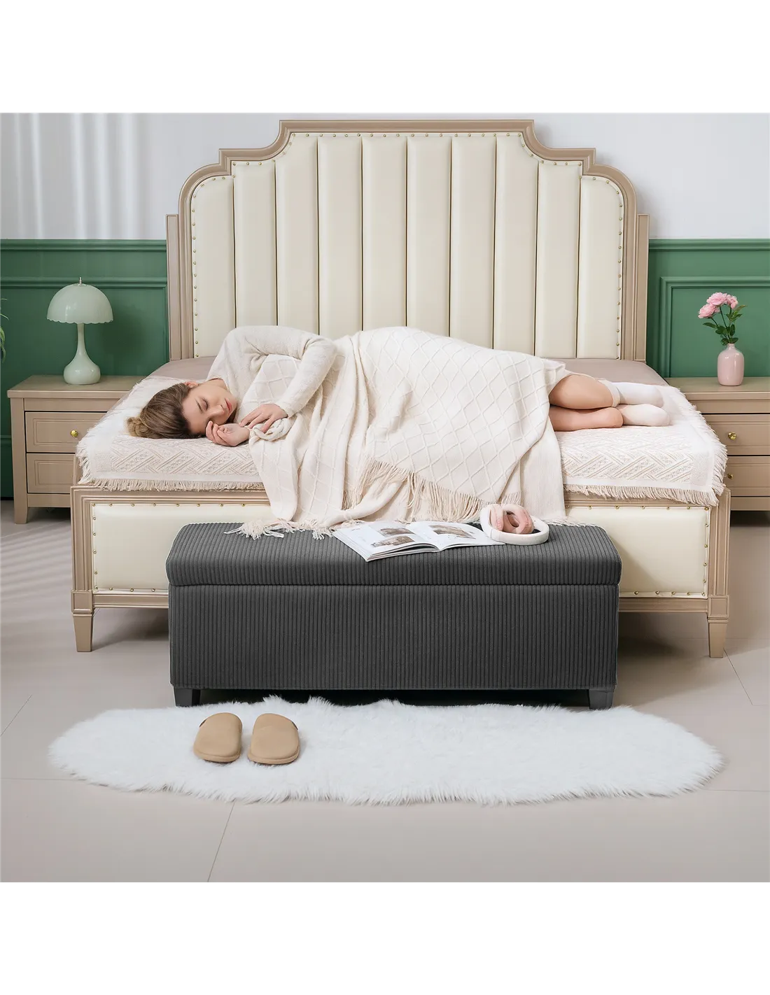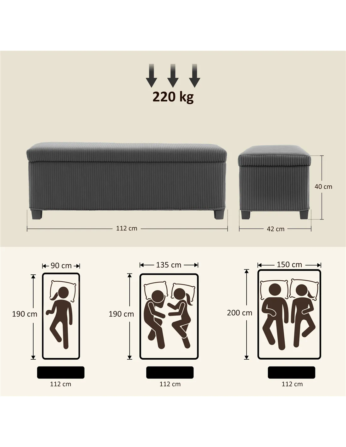 HOMCOM 84L Corduroy Storage Ottoman - Grey