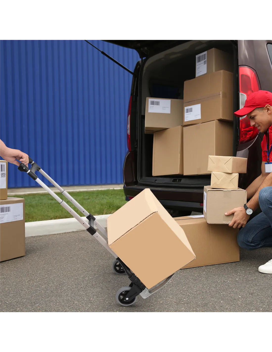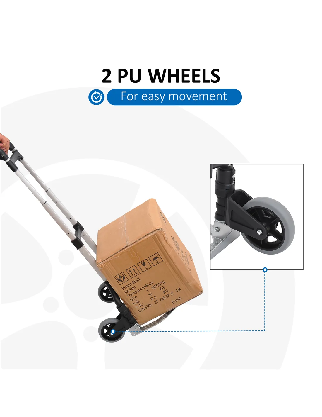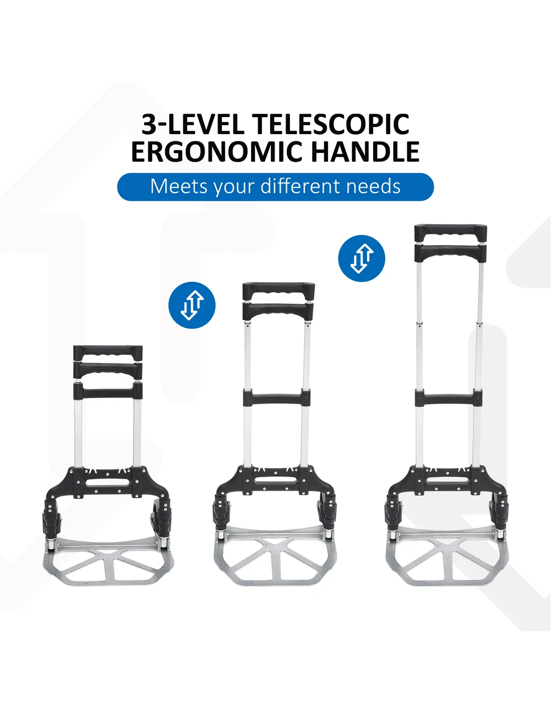 - Adjustable telescoping handle suits users of different heights, ensuring comfortable handling whether moving parcels, luggage, or bulky items.