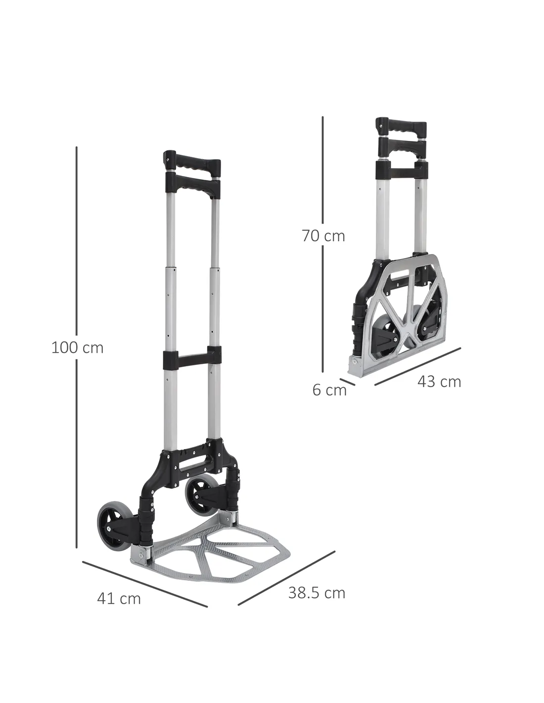 This folding trolley cart from HOMCOM makes travelling with multiple bags a breeze. Made from heavy-duty yet lightweight aluminium, it's designed for strength and easy handling. Its folding design accommodates various bag sizes and allows for compact storage in your car. Featuring two comfortable hand grips, a robust base and smooth rolling wheels, this foldable trolley on wheels ensures a seamless journey every time.