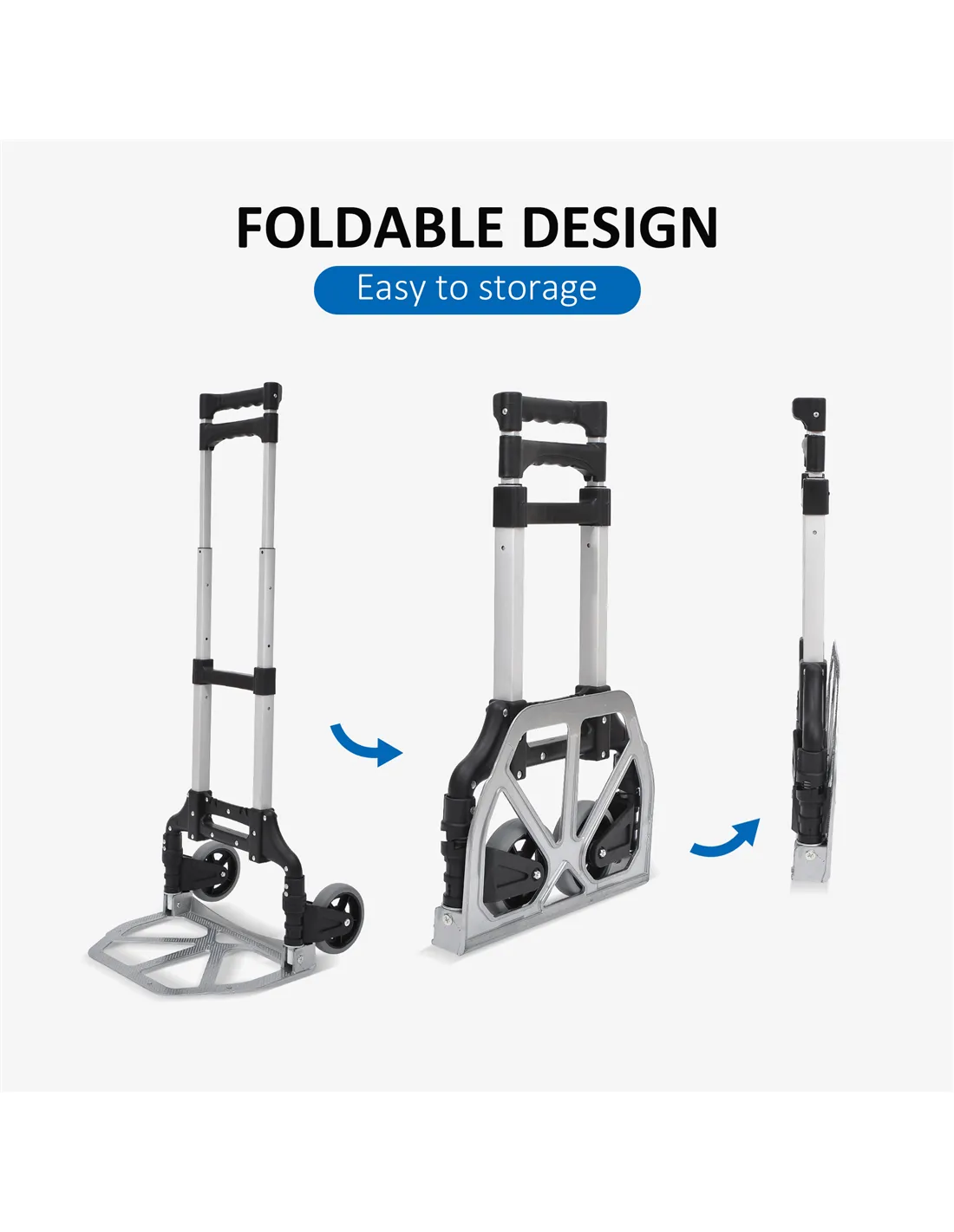 HOMCOM Aluminium Folding Hand Truck Trolley, Heavy Duty Foldable Sack Cart with Adjustable Telescoping Handle, 70KG Load Capacity