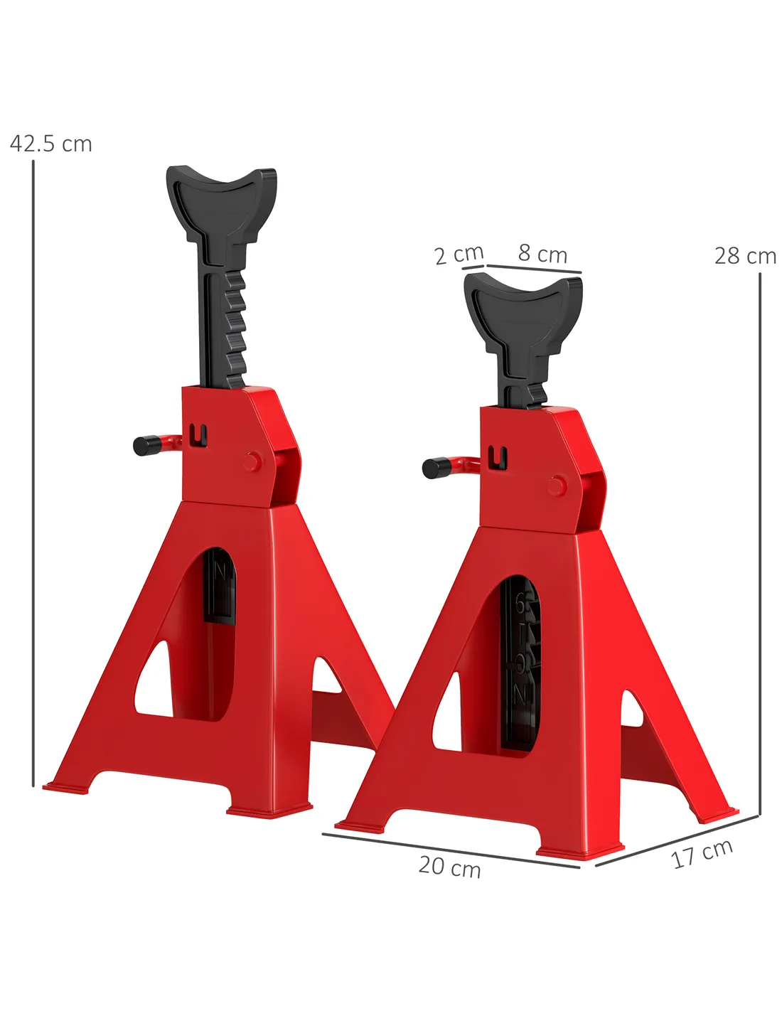 HOMCOM Axle Stands 2 Ton Car Jack Stands Pack of 2, 28-42.5 cm Height Adjustable Support Jack Stand, Heavy Duty Car Lift Tool for Vehicles, Caravans, Workshops, Garages, Red