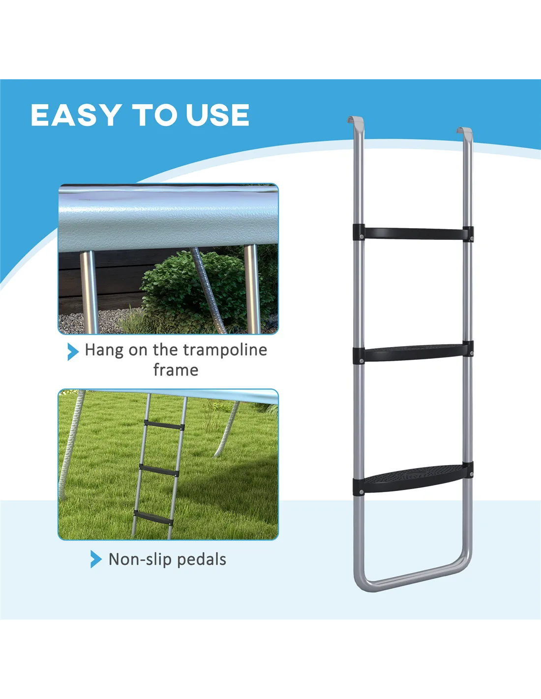 SPORTNOW Galvanised Steel Trampoline Ladder, 2 Steps/3 Steps Outdoor Trampoline Accessories for 6ft, 8ft, 10ft, 12ft, 13ft, 14ft, 16ft Trampoline, 110L x 32Wcm, Silver Tone
